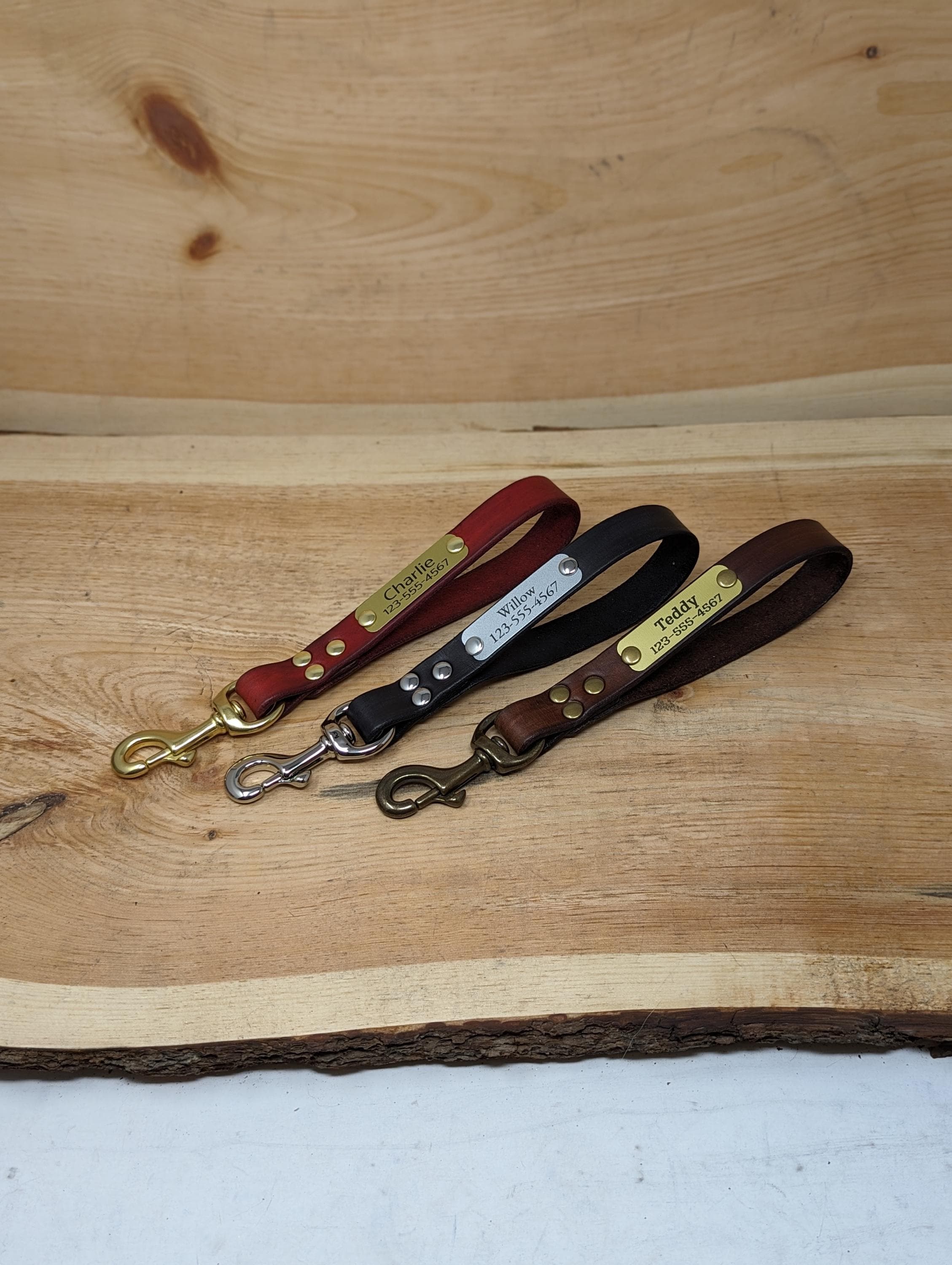 I'm happy to rivet one of these nameplates onto a leash or collar I offer in my shop! Simply leave a note at check-out or in the personalization section to let me know which collar, leash, or harness you'd like the nameplate/s on and I'll rivet it directly to your pup's gear!
