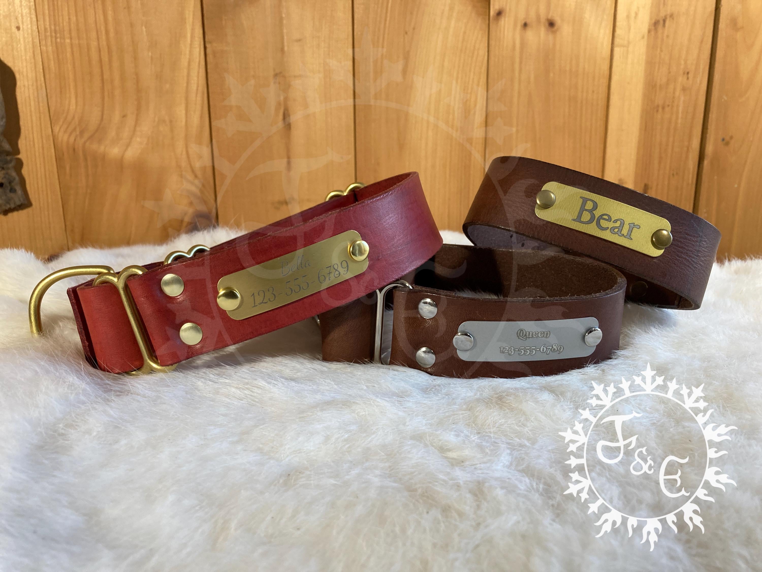 Keep people from stealing your pup's leash at obedience class with a customized ID nameplate! or help ensure your adventuring pup makes it home safely with a clear, engraved ID tag riveted directly onto their collar!