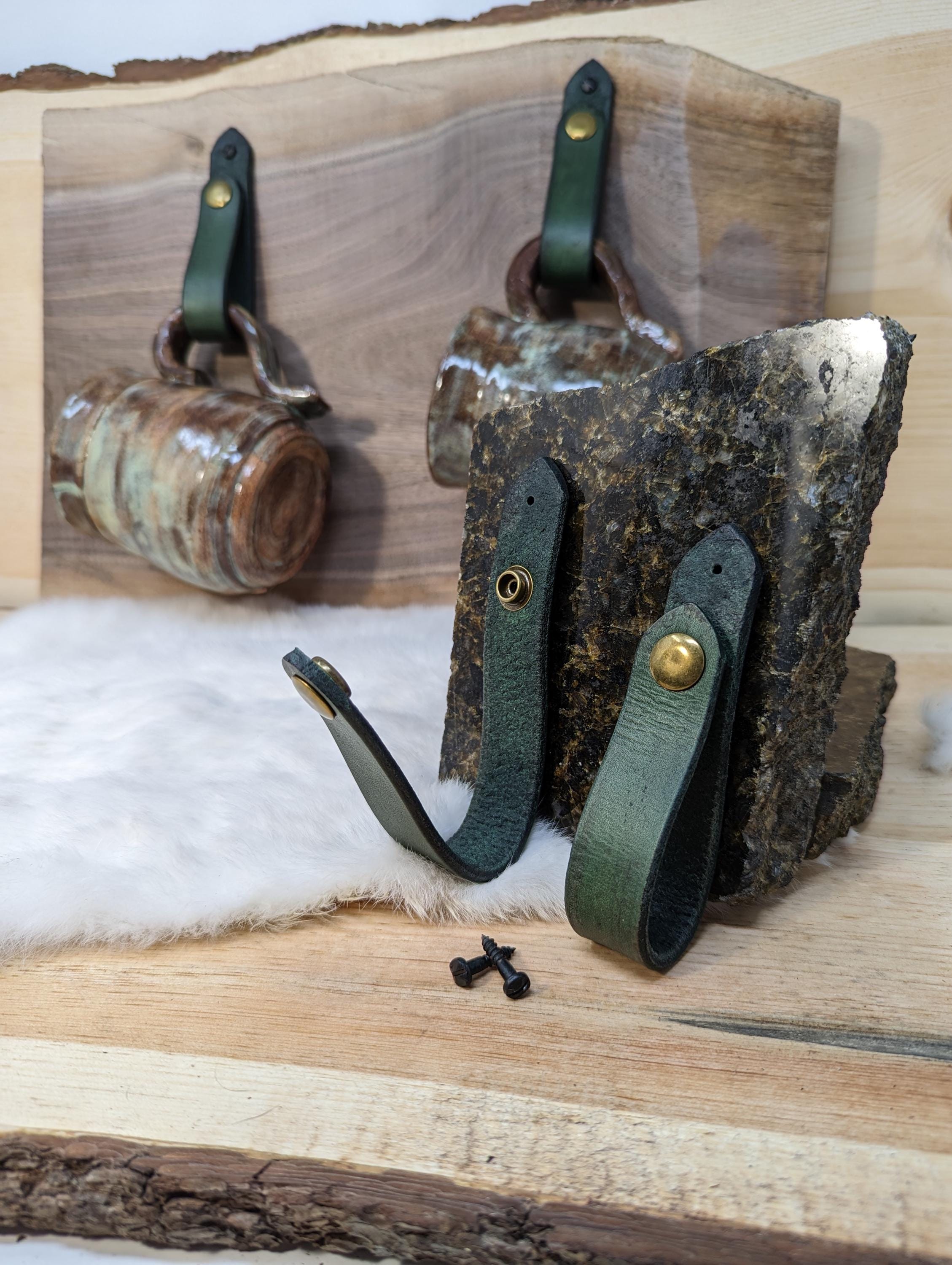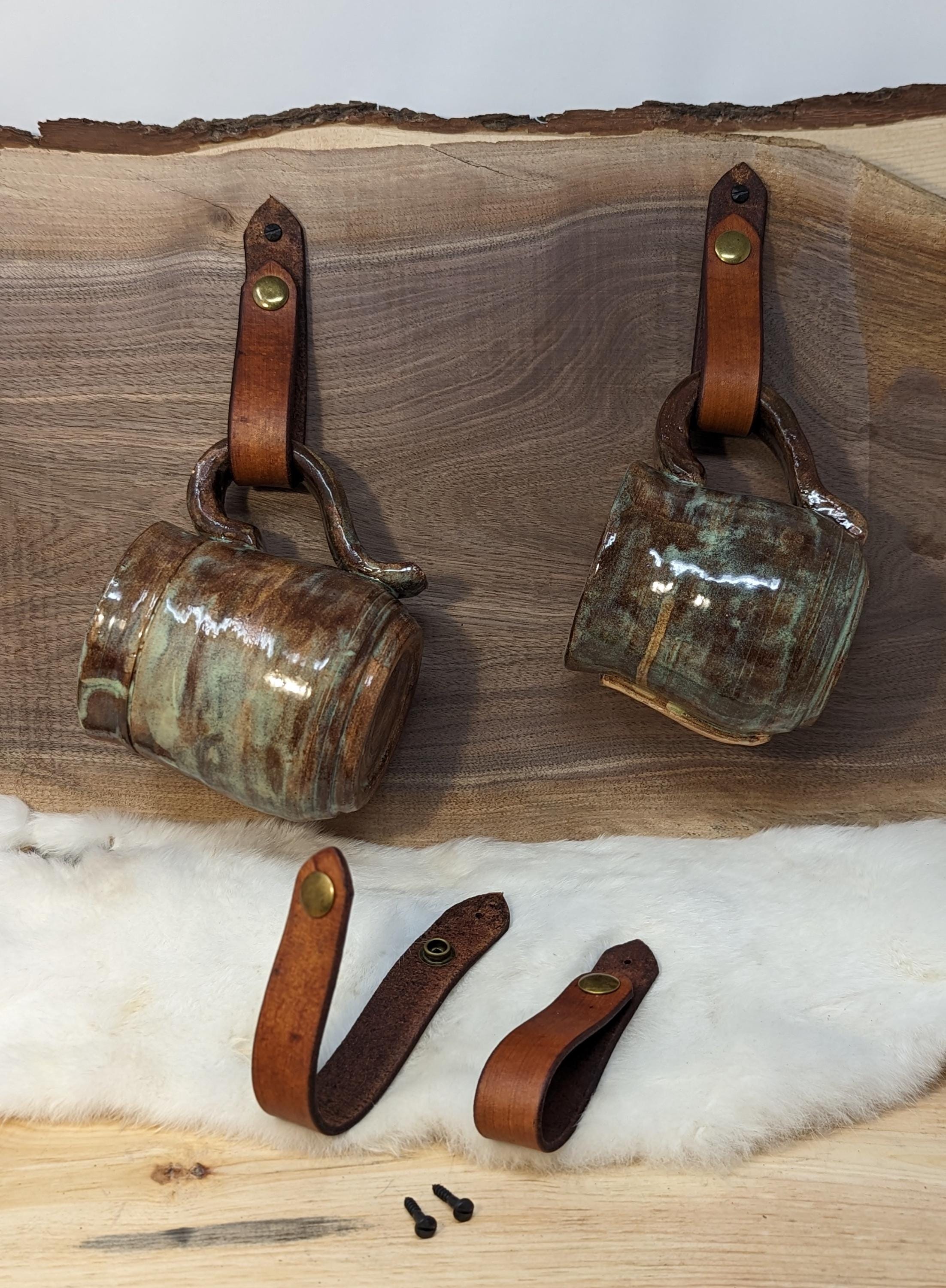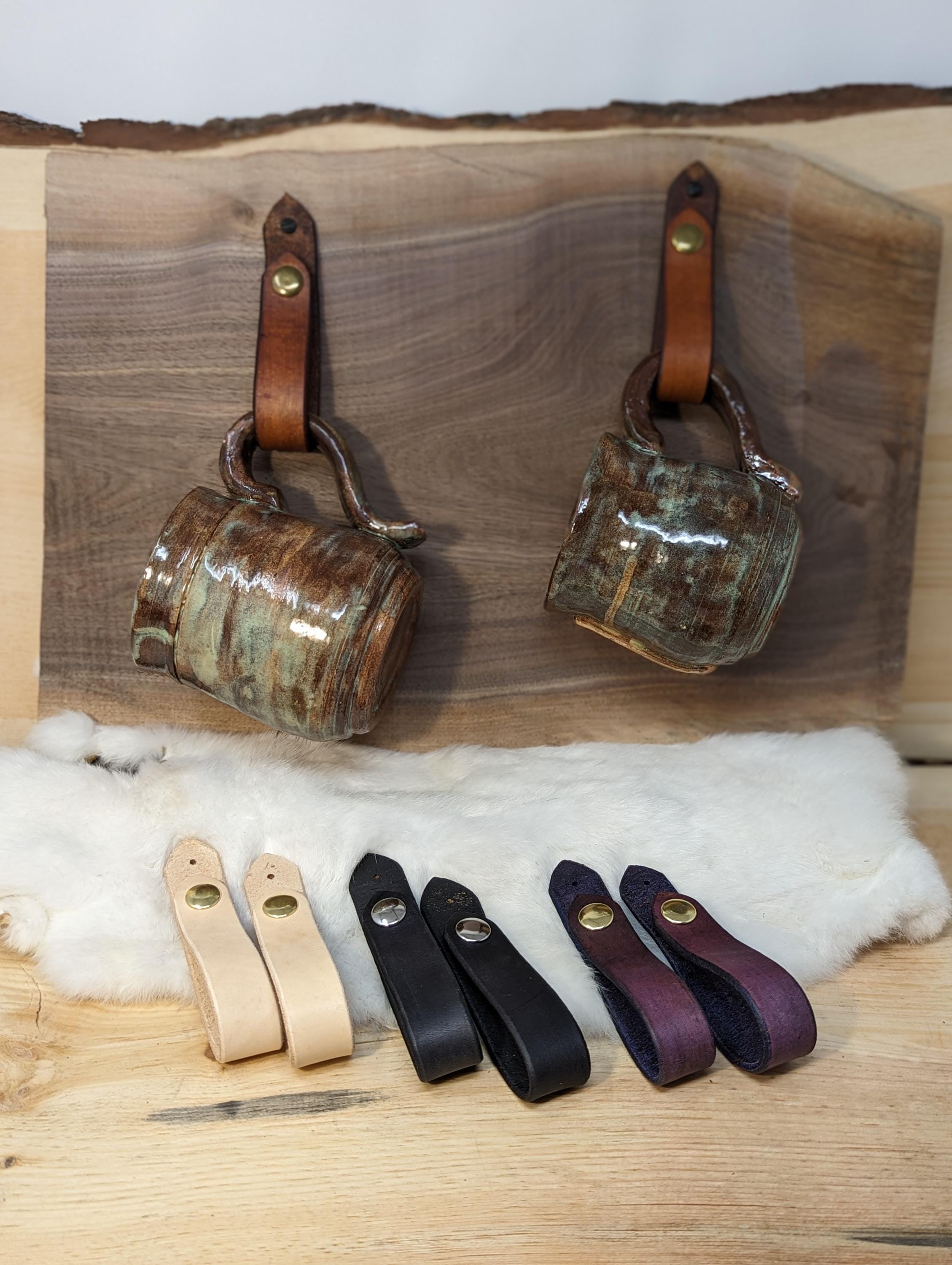 This is a listing for one, two, four, six, eight, or a dozen leather wall hanger straps for cups, mugs, towels or anything else you can think of!