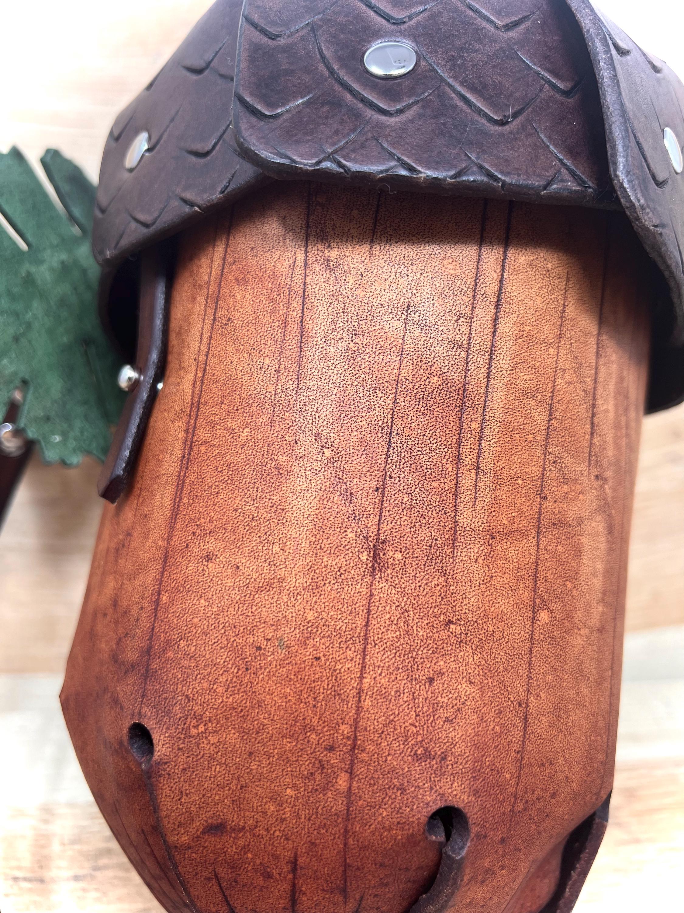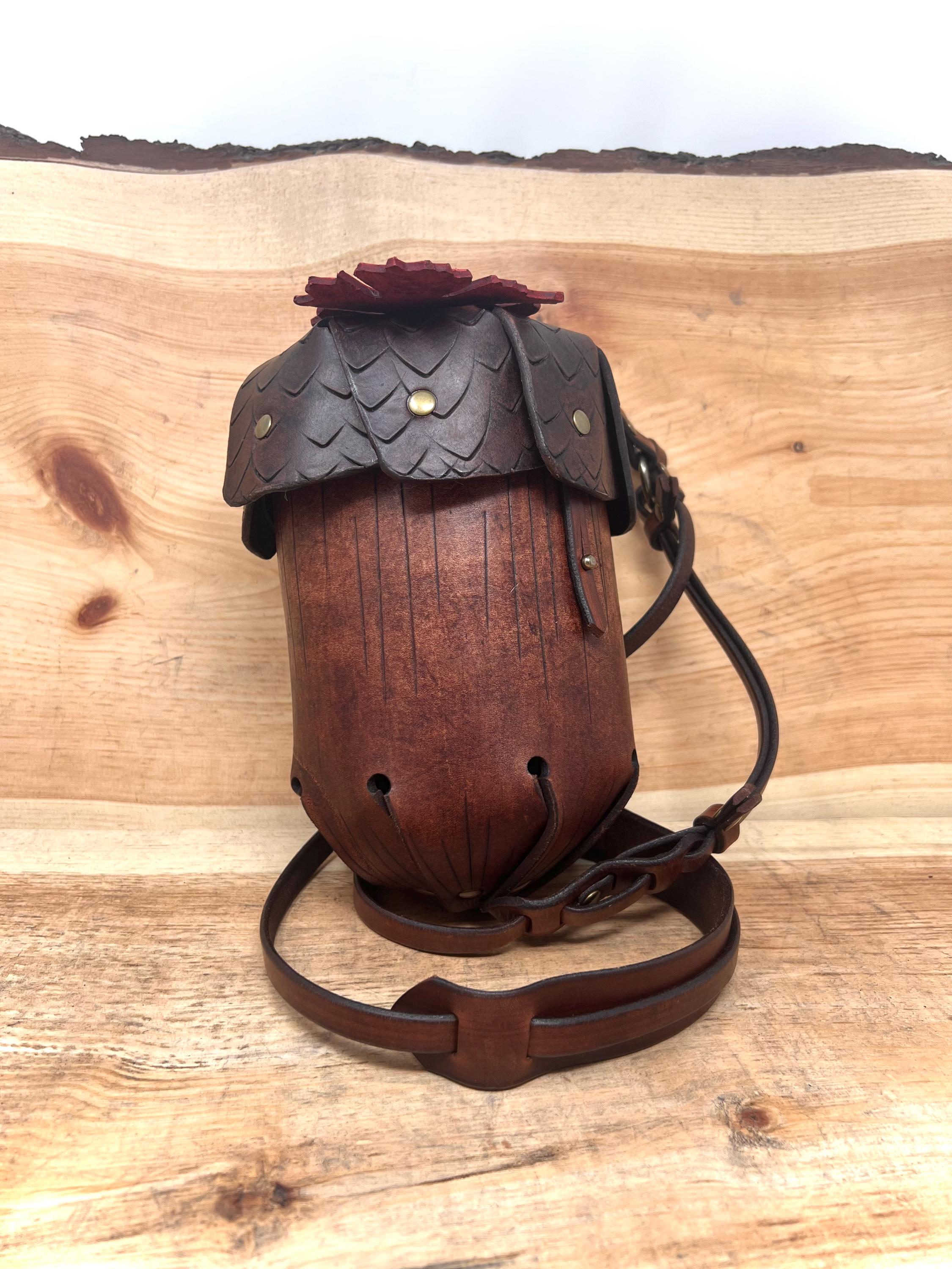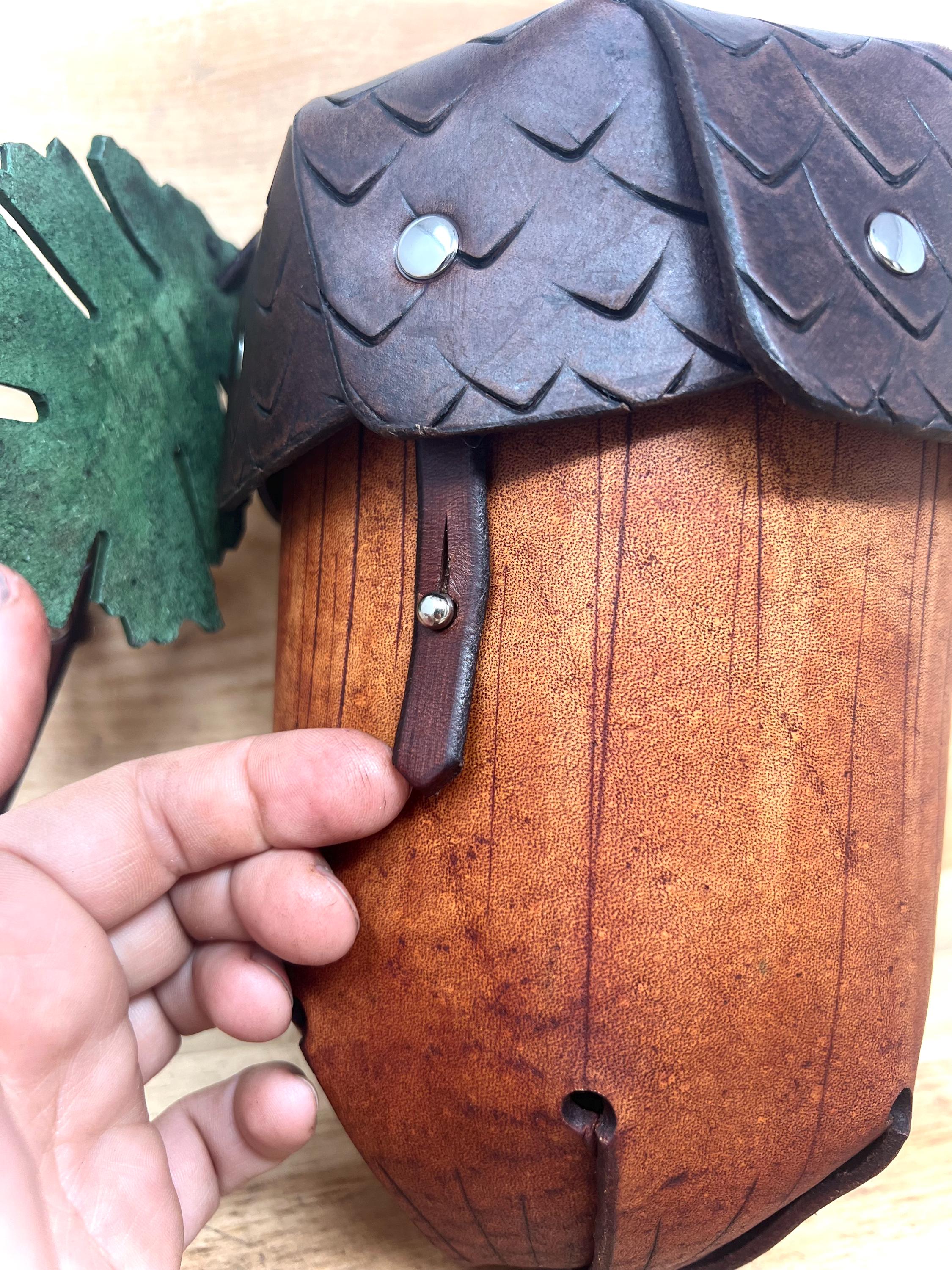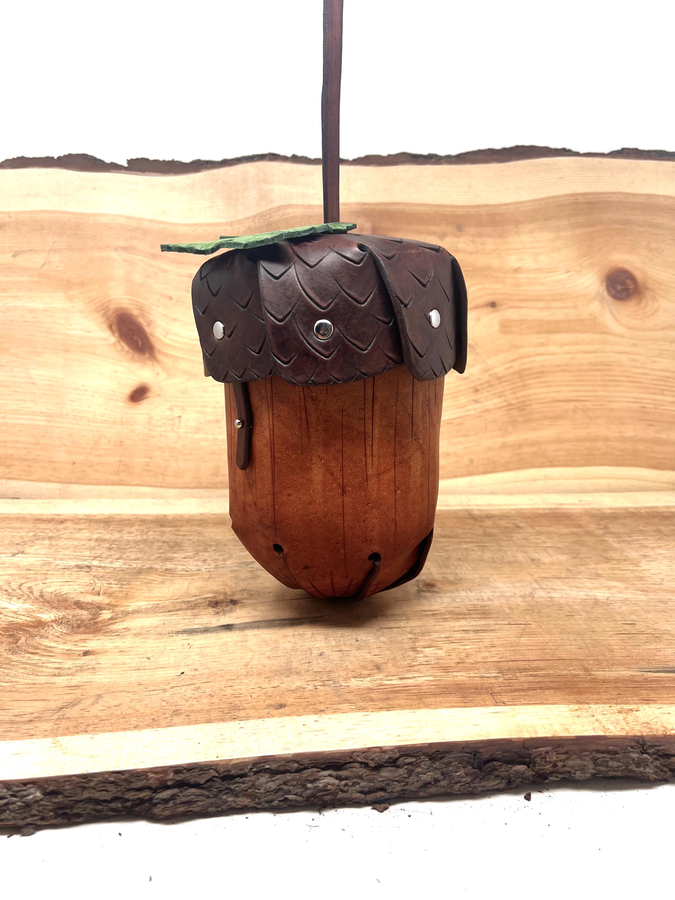 - Customize your acorn in: Natural (Brown top and straps, Fawn body), all brown, black, fawn, tan, red, purple, green, or blue leather colors