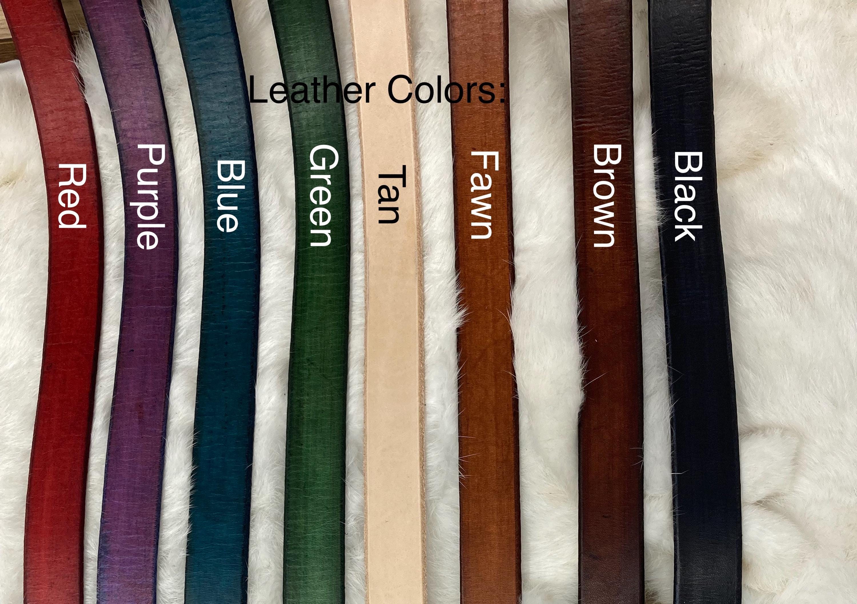 Choose from Brown, Fawn, Tan, Black, Red, Purple, Blue, or Green leather and match with a large 5" or small 3" barrette for your hair type and volume!