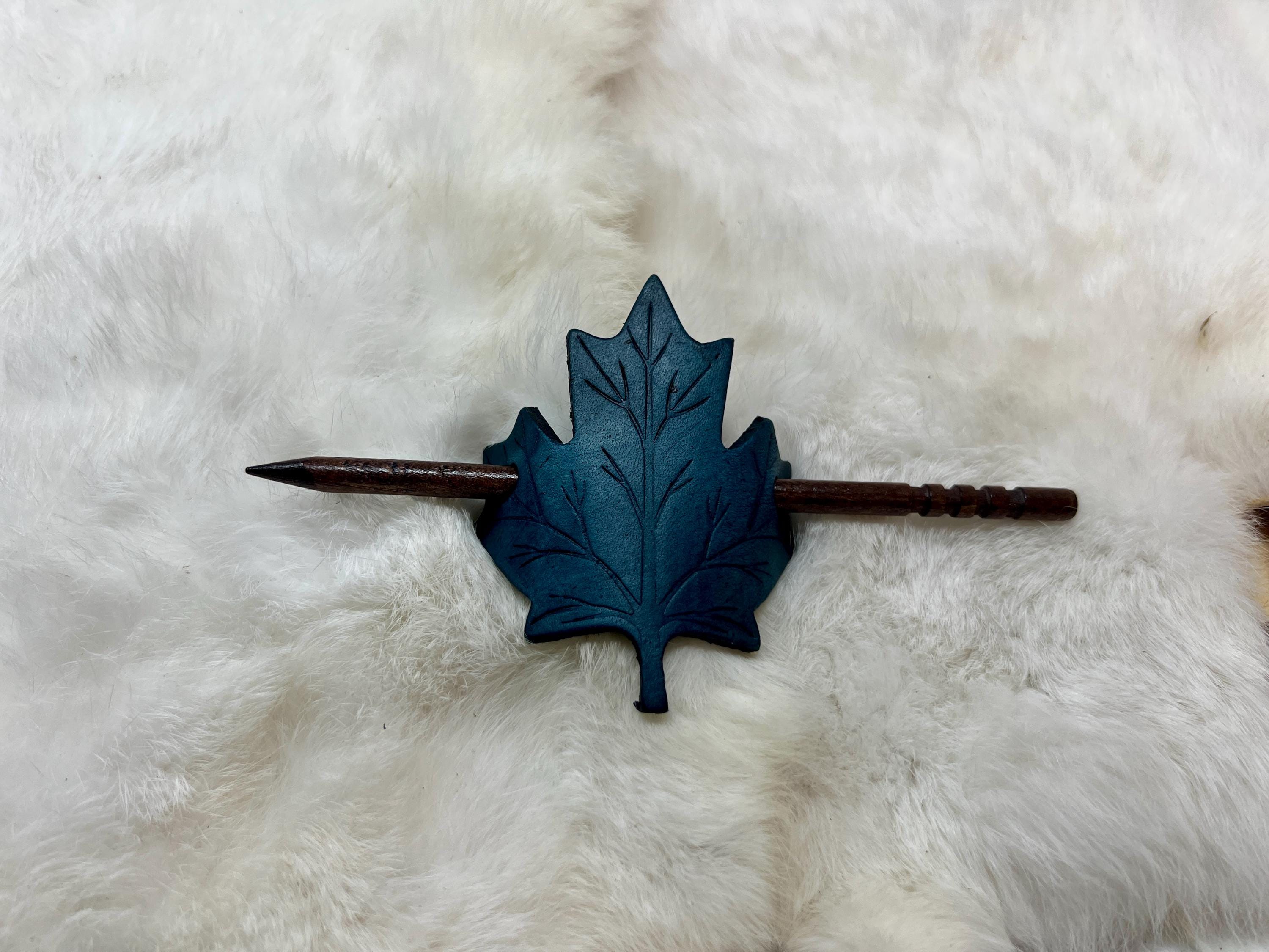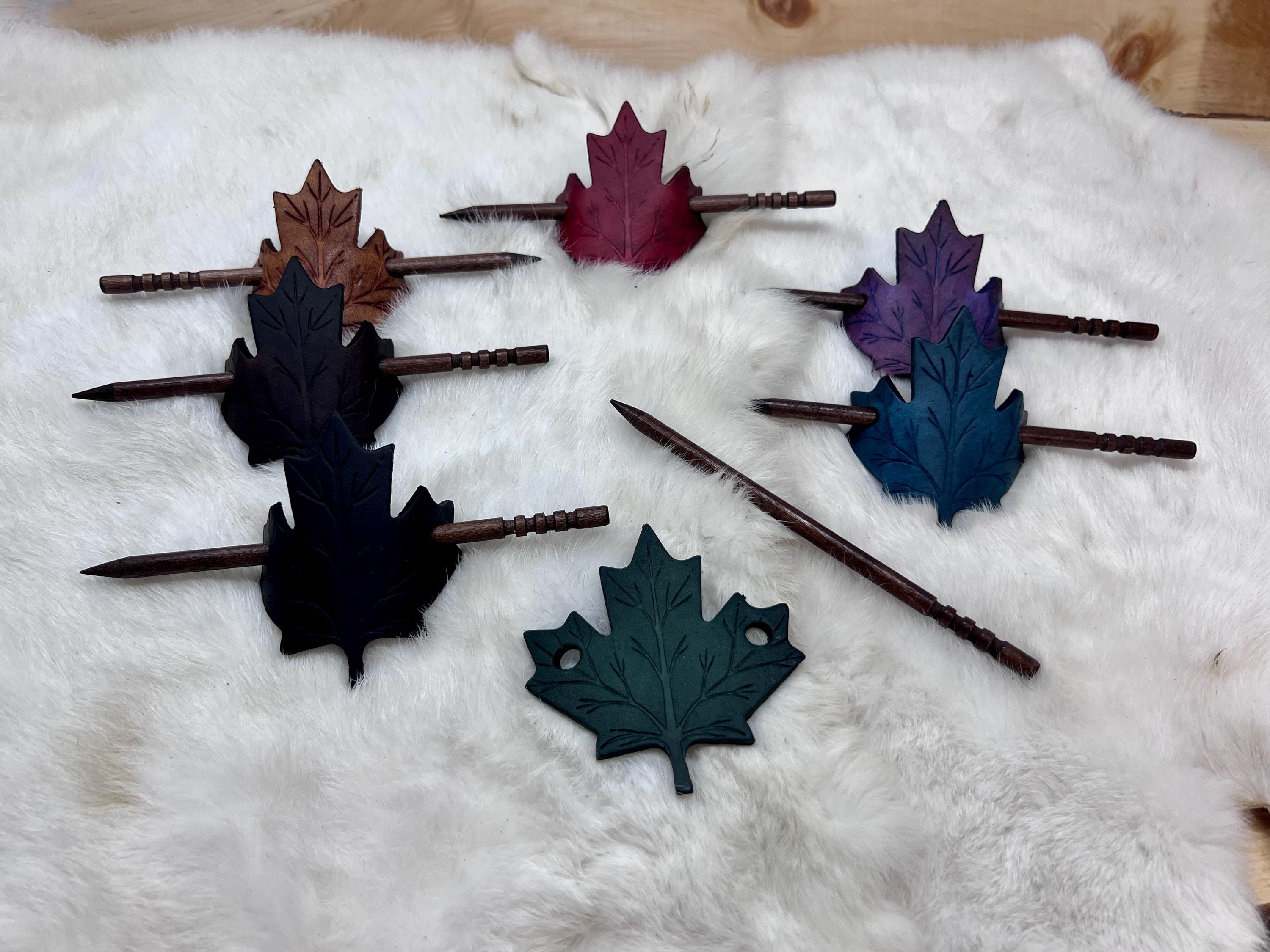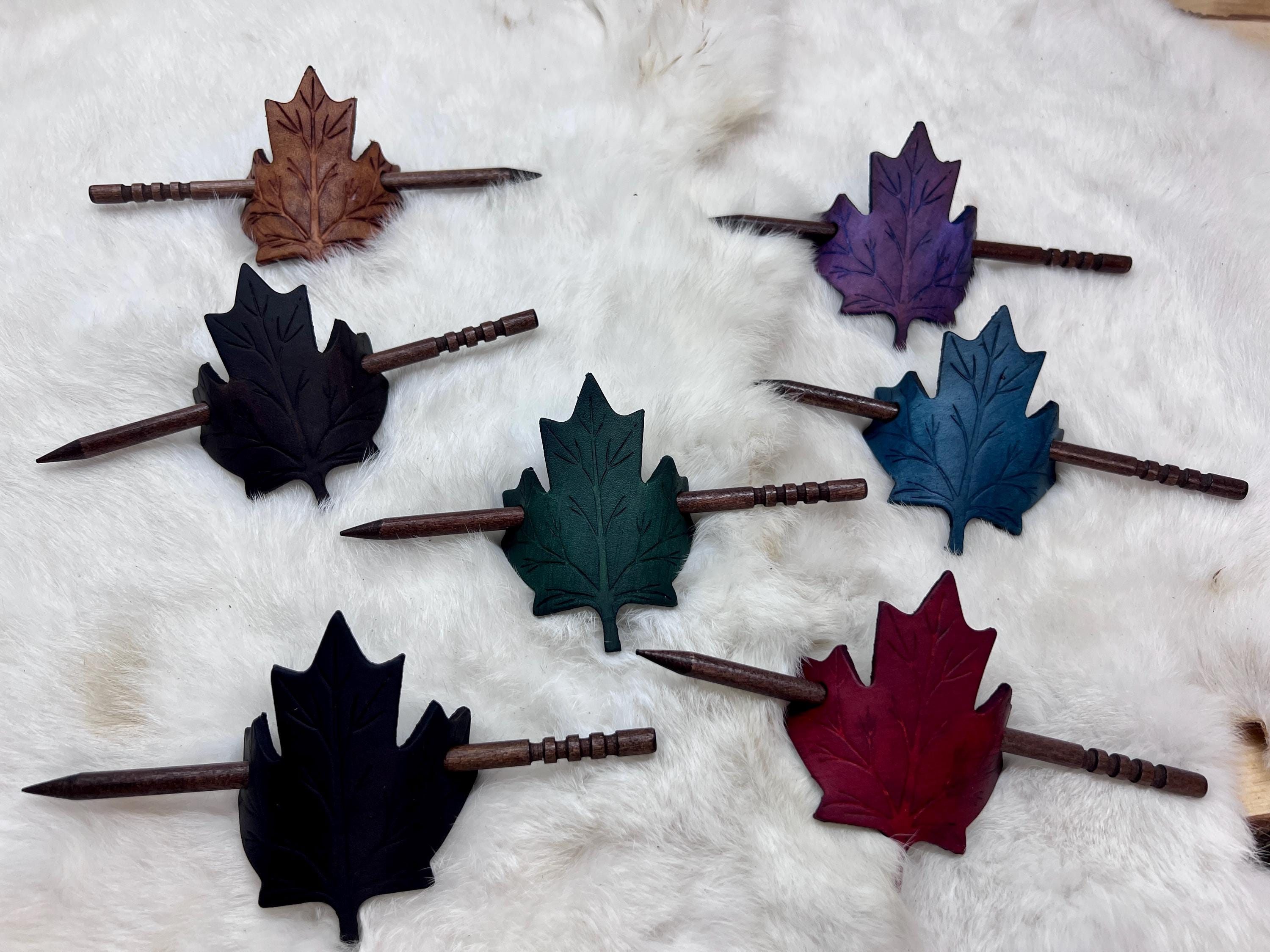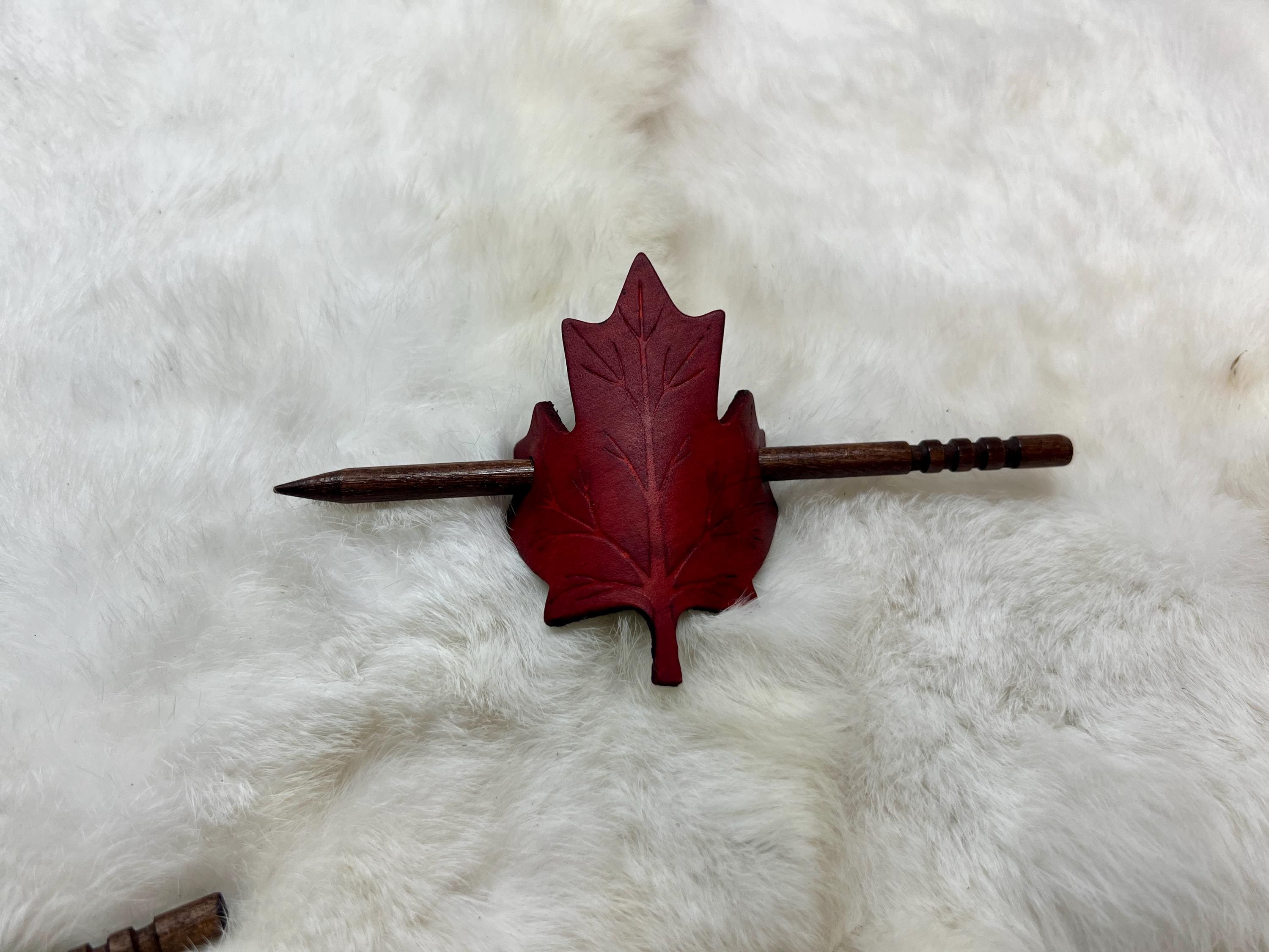 - Leather maple leaf hair pin
