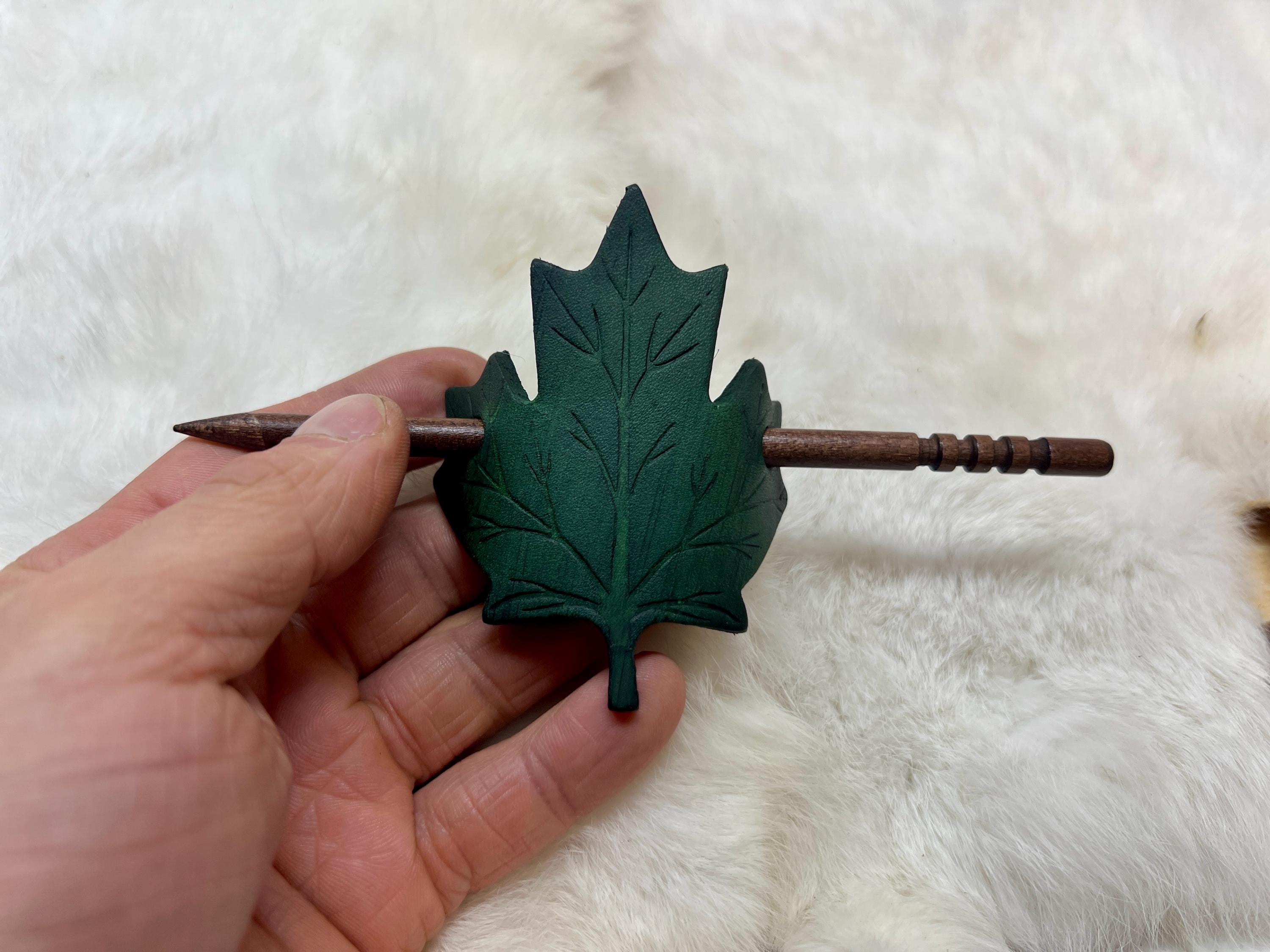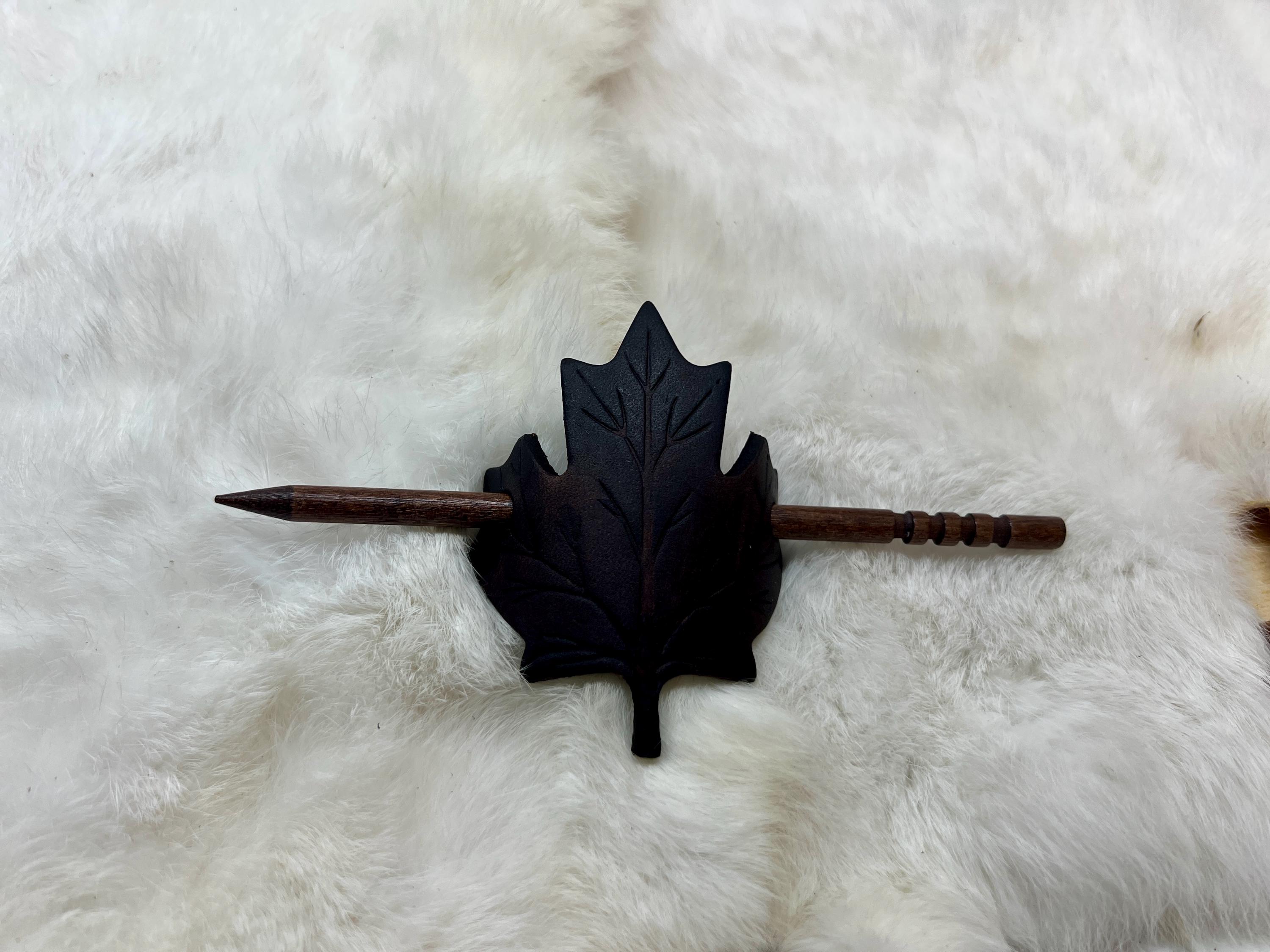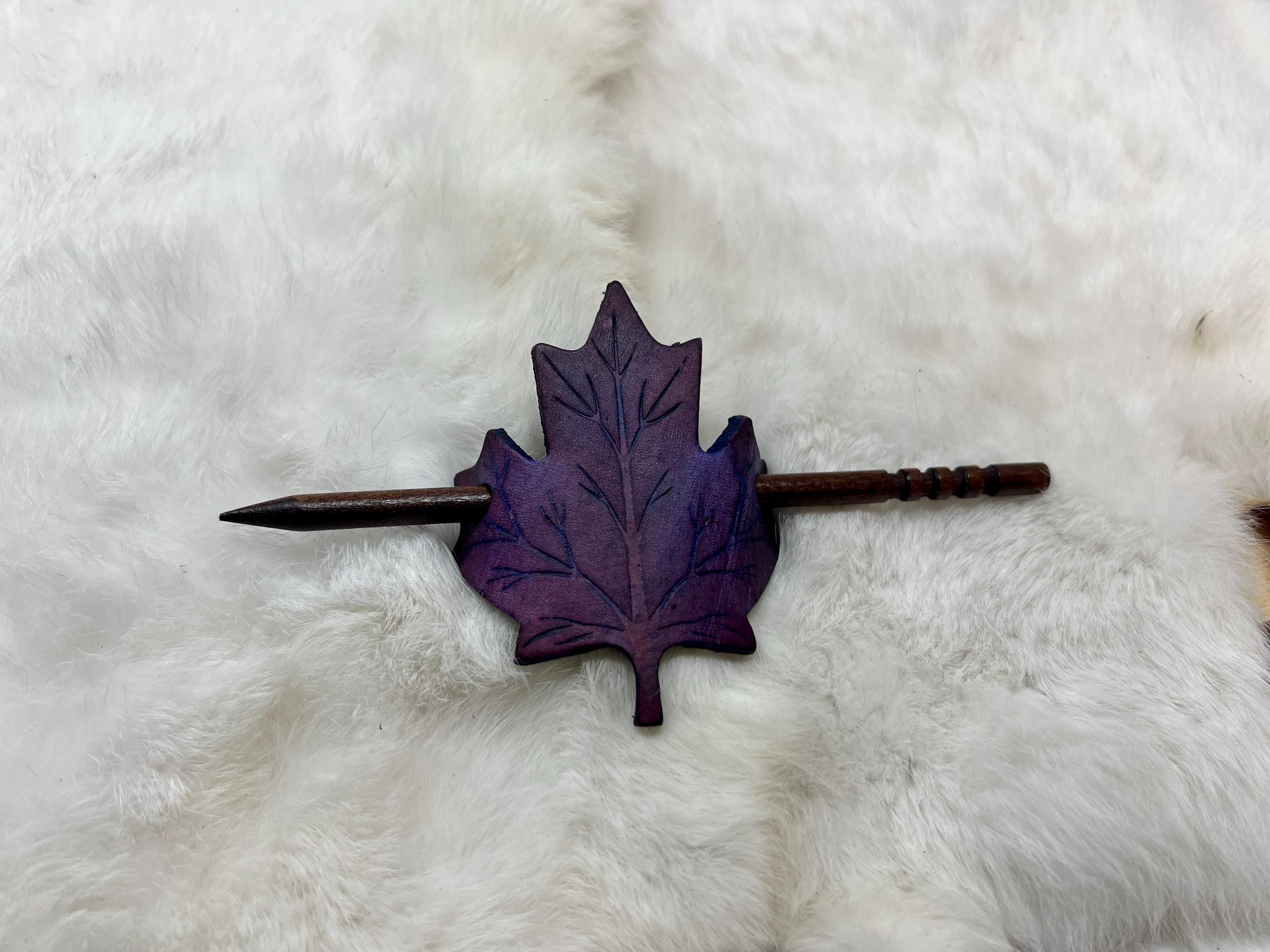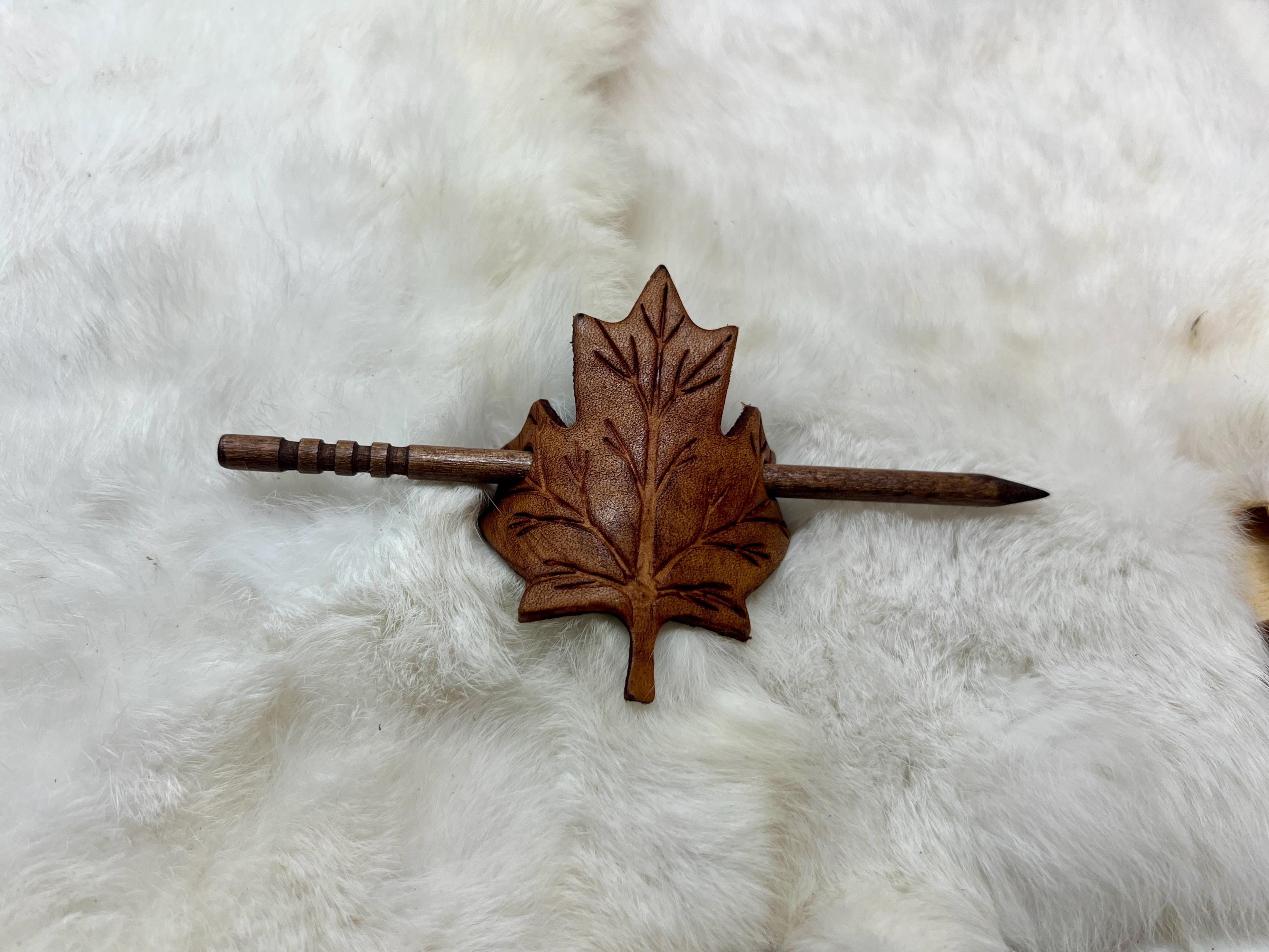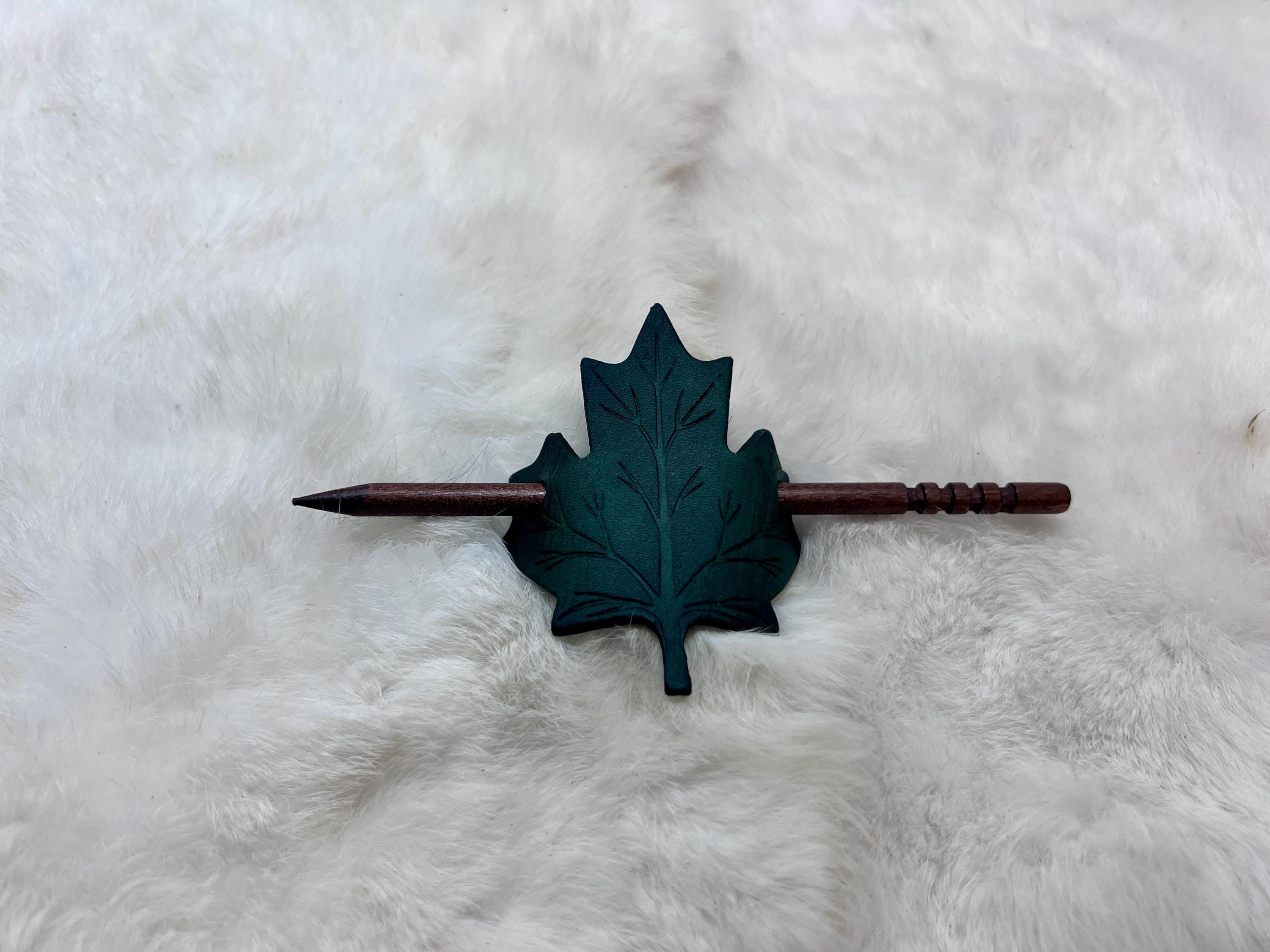 - Leather maple leaf hair pin