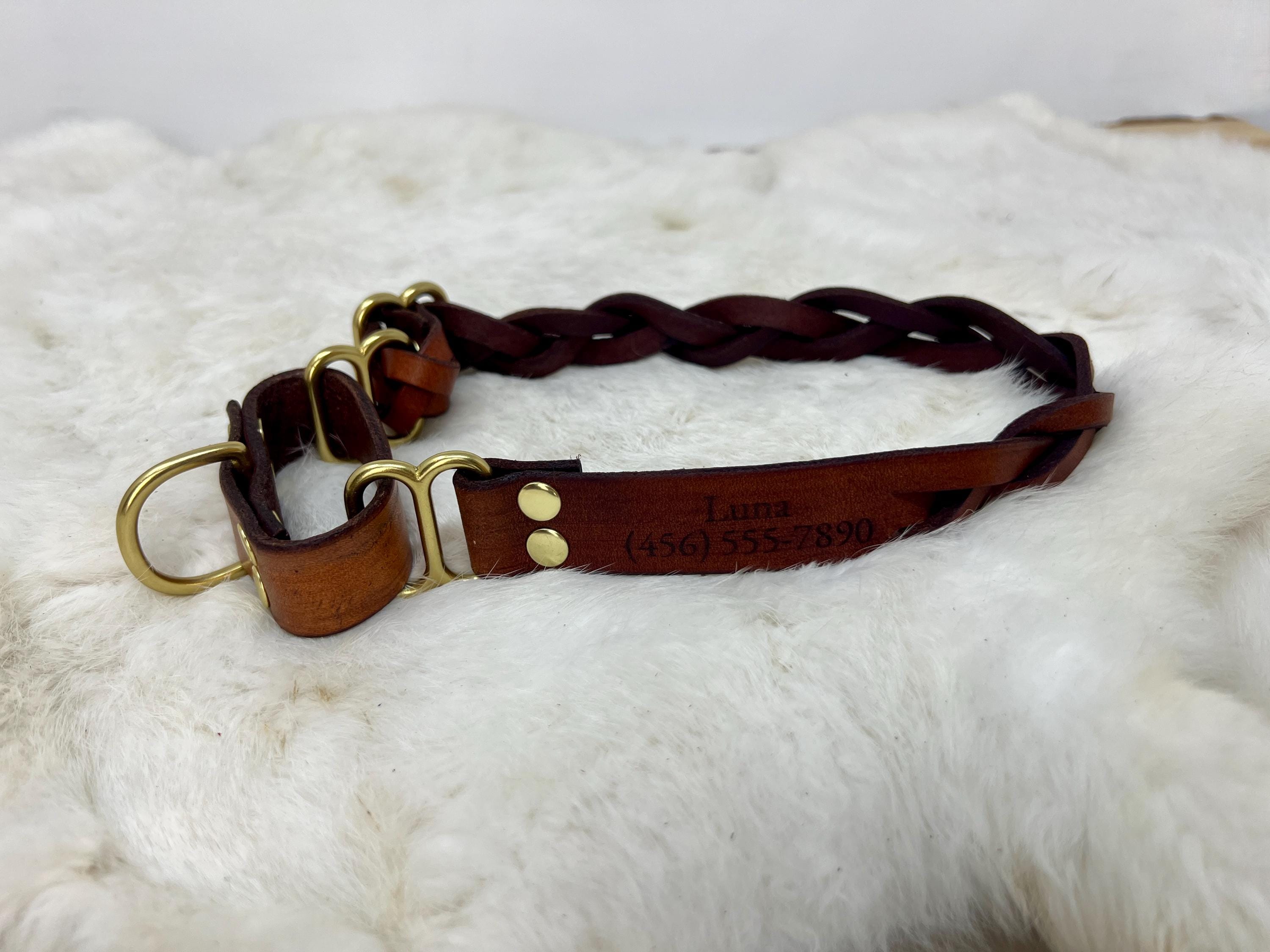 - Customize your pup's collar with their name and/or phone number engraved directly in the leather