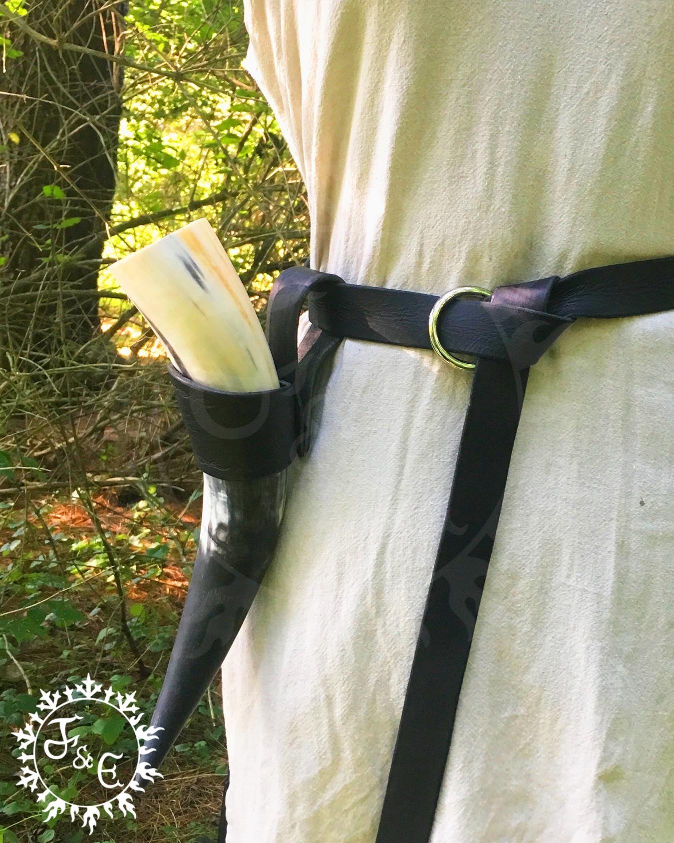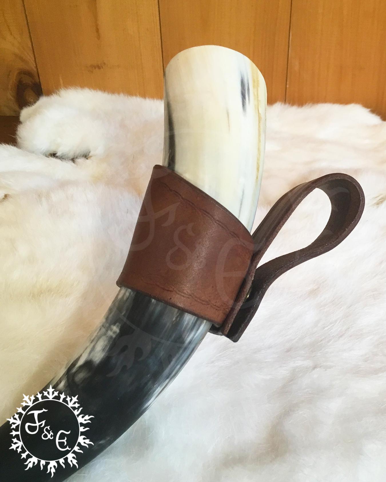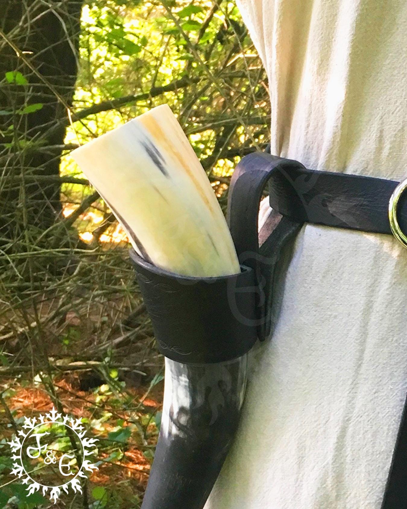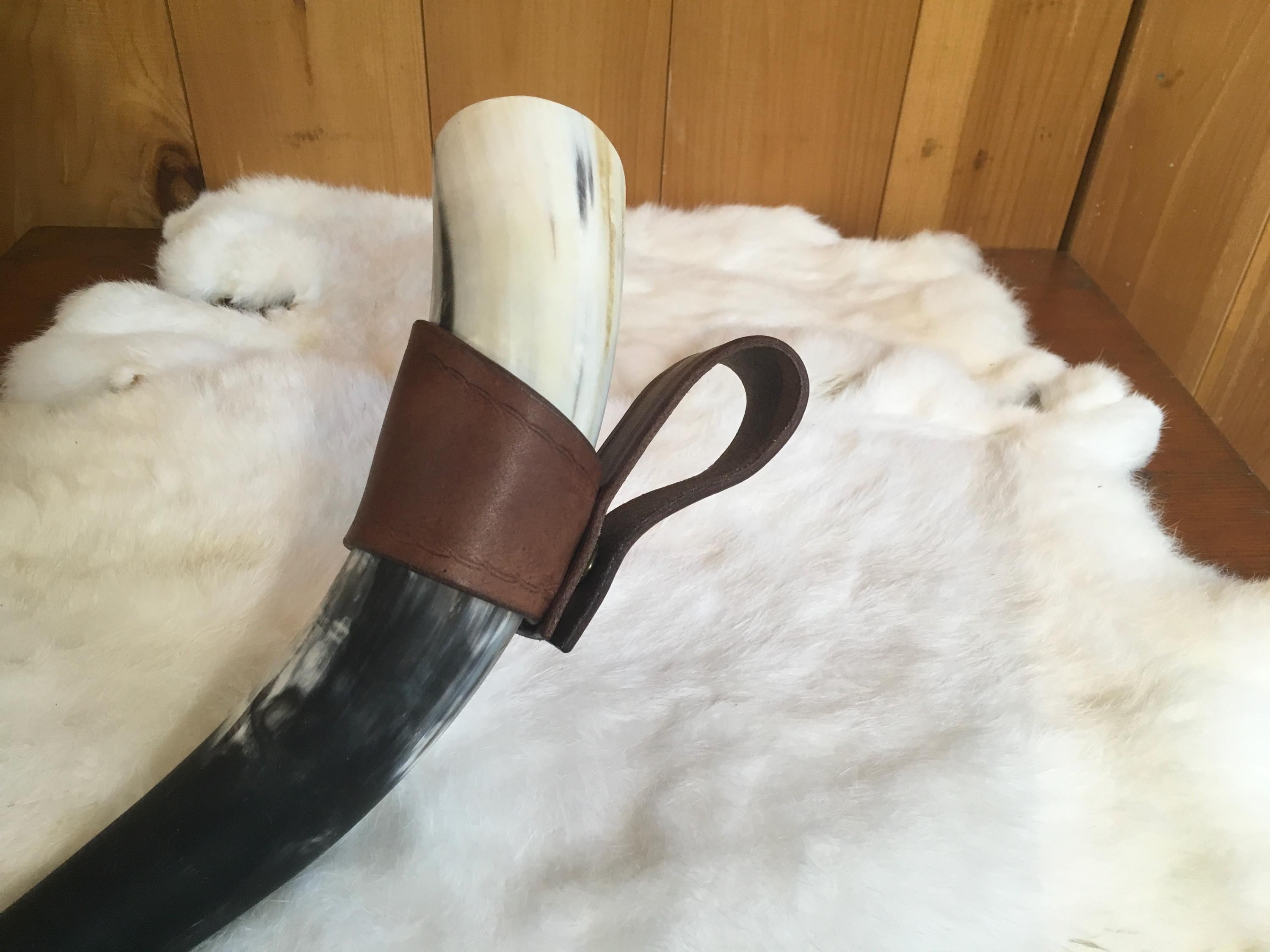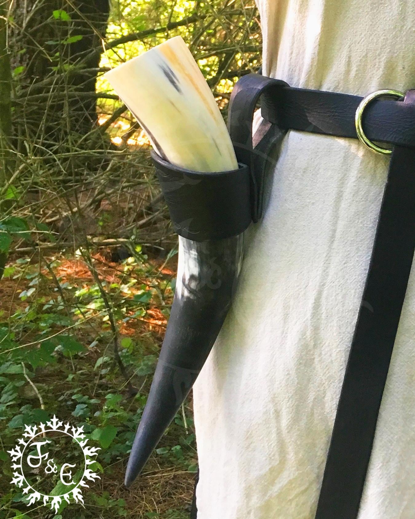 Keep your drinking horn close to hand and don't let anyone steal your ale! Whether your an explorer toasting with your crew to new shores or a shield-maiden finishing of the last of the mead, you'll need to keep your drinking horn clean and on your belt with a horn belt frog.