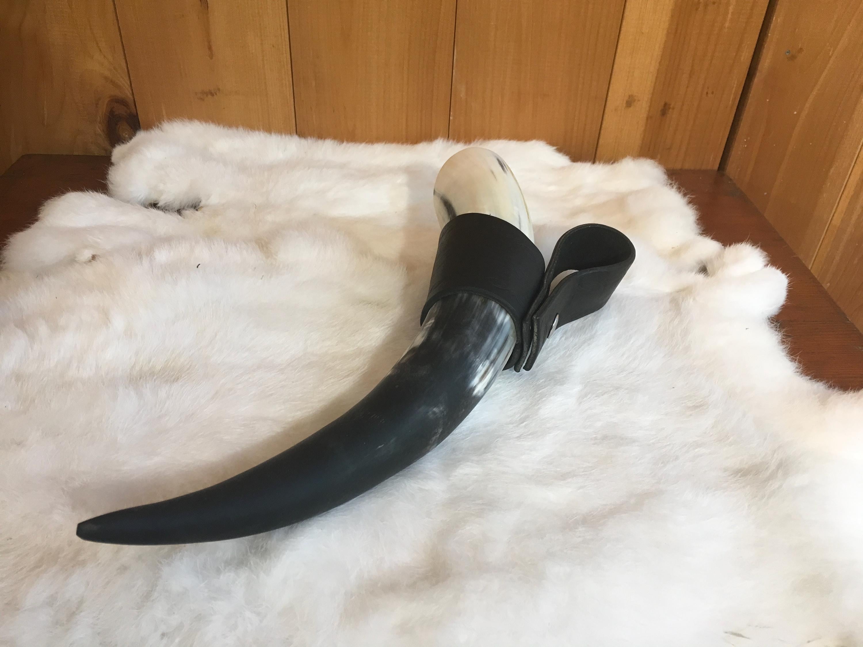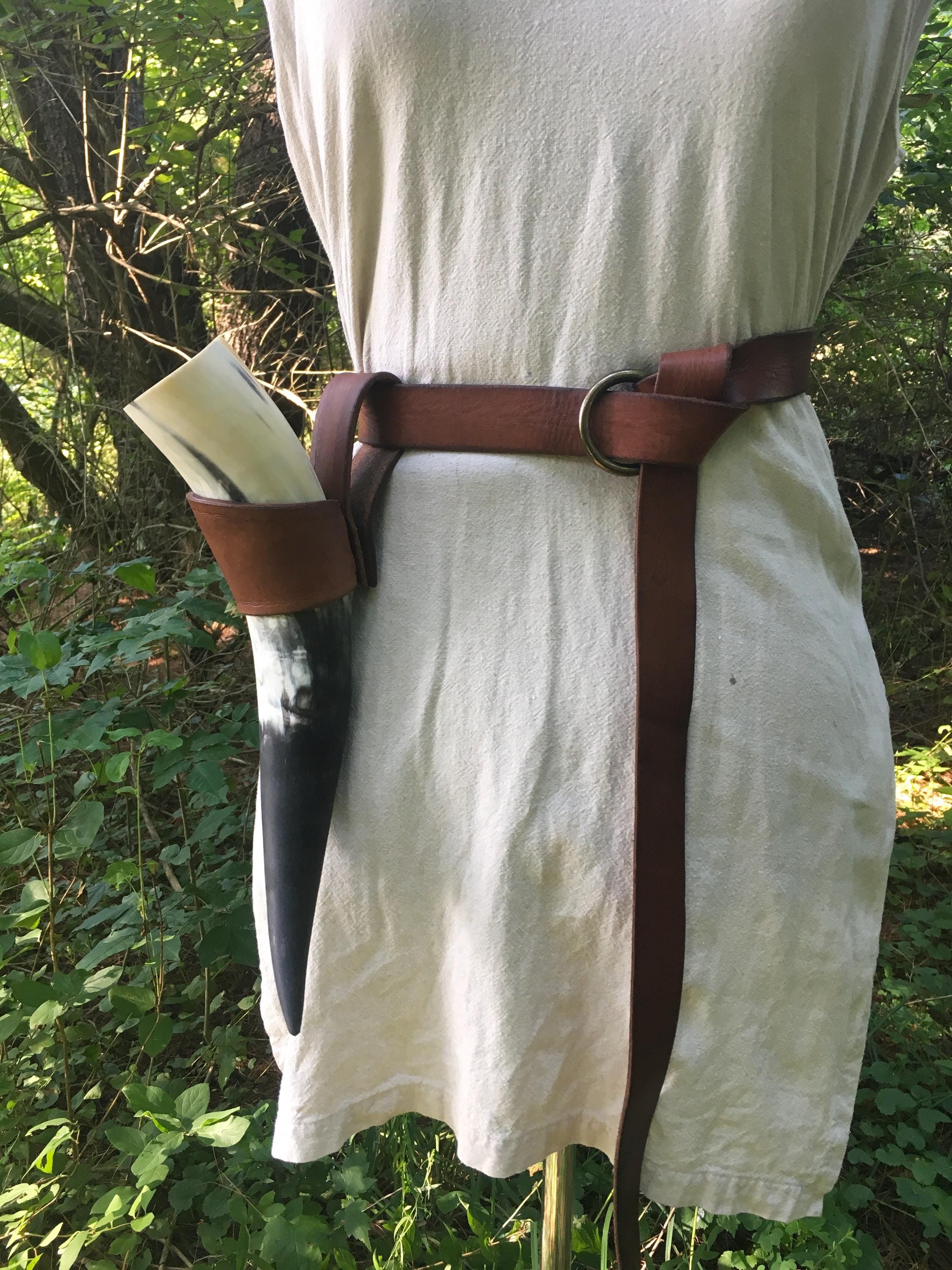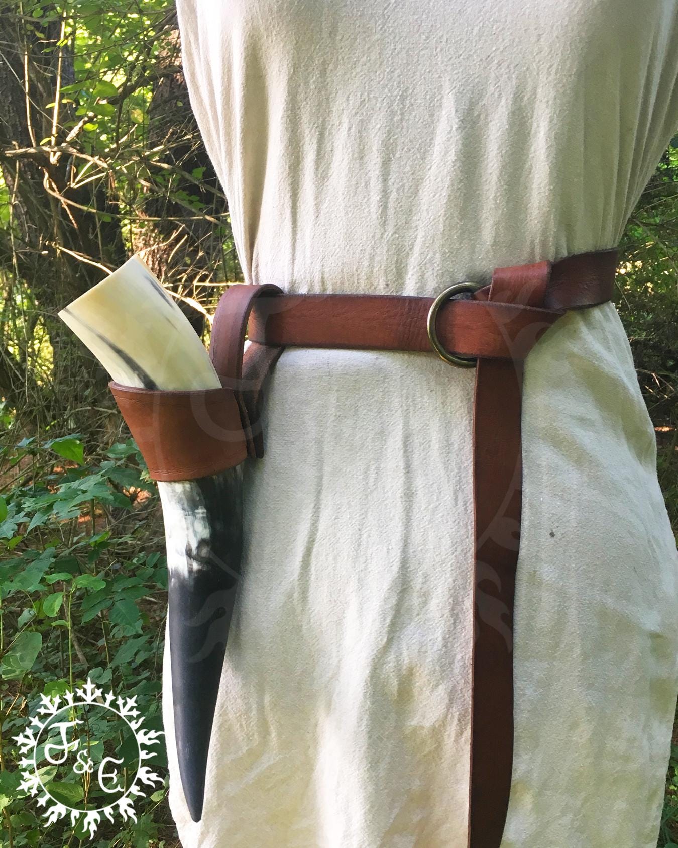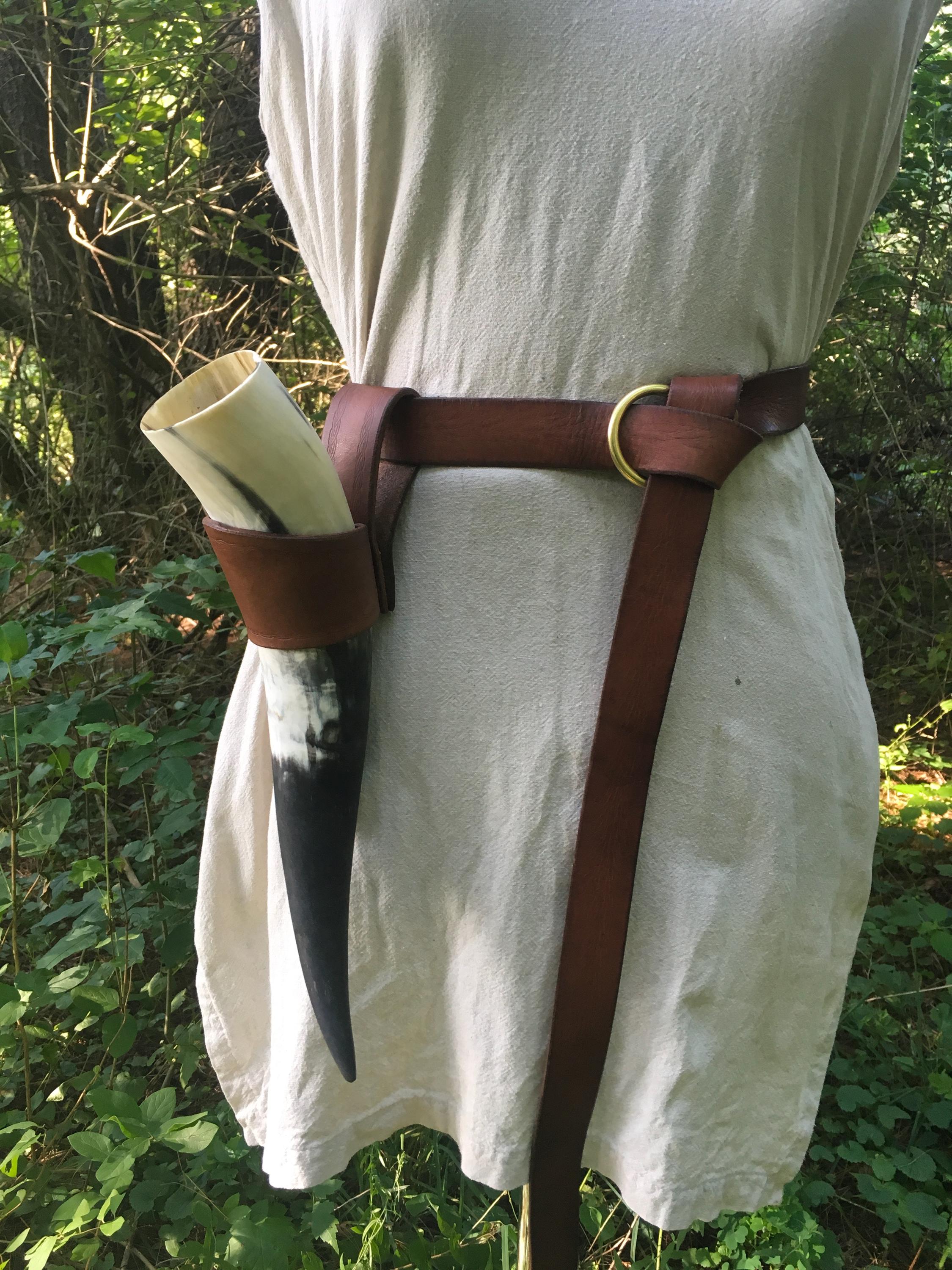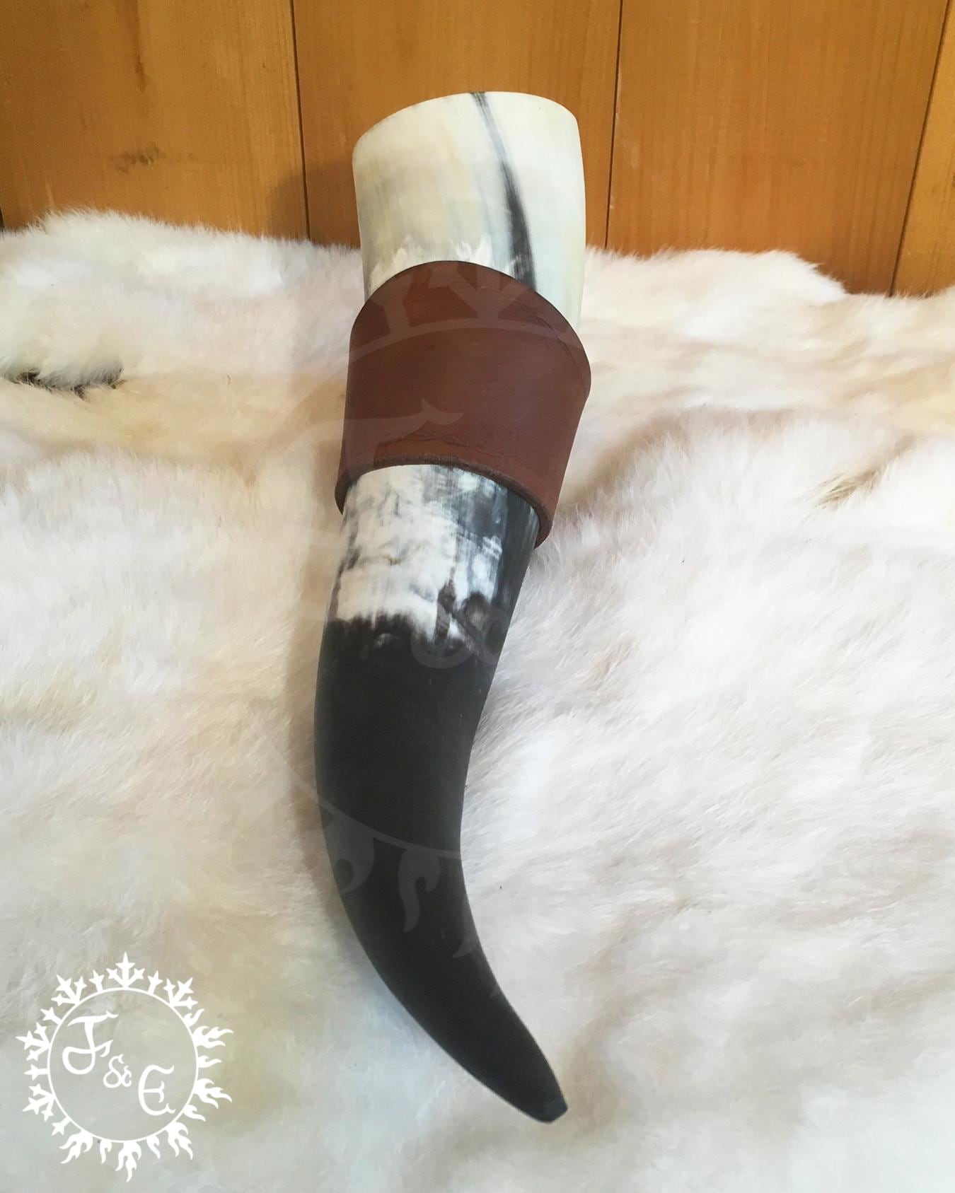 Keep your drinking horn close to hand and don't let anyone steal your ale! Whether your an explorer toasting with your crew to new shores or a shield-maiden finishing of the last of the mead, you'll need to keep your drinking horn clean and on your belt with a horn belt frog.