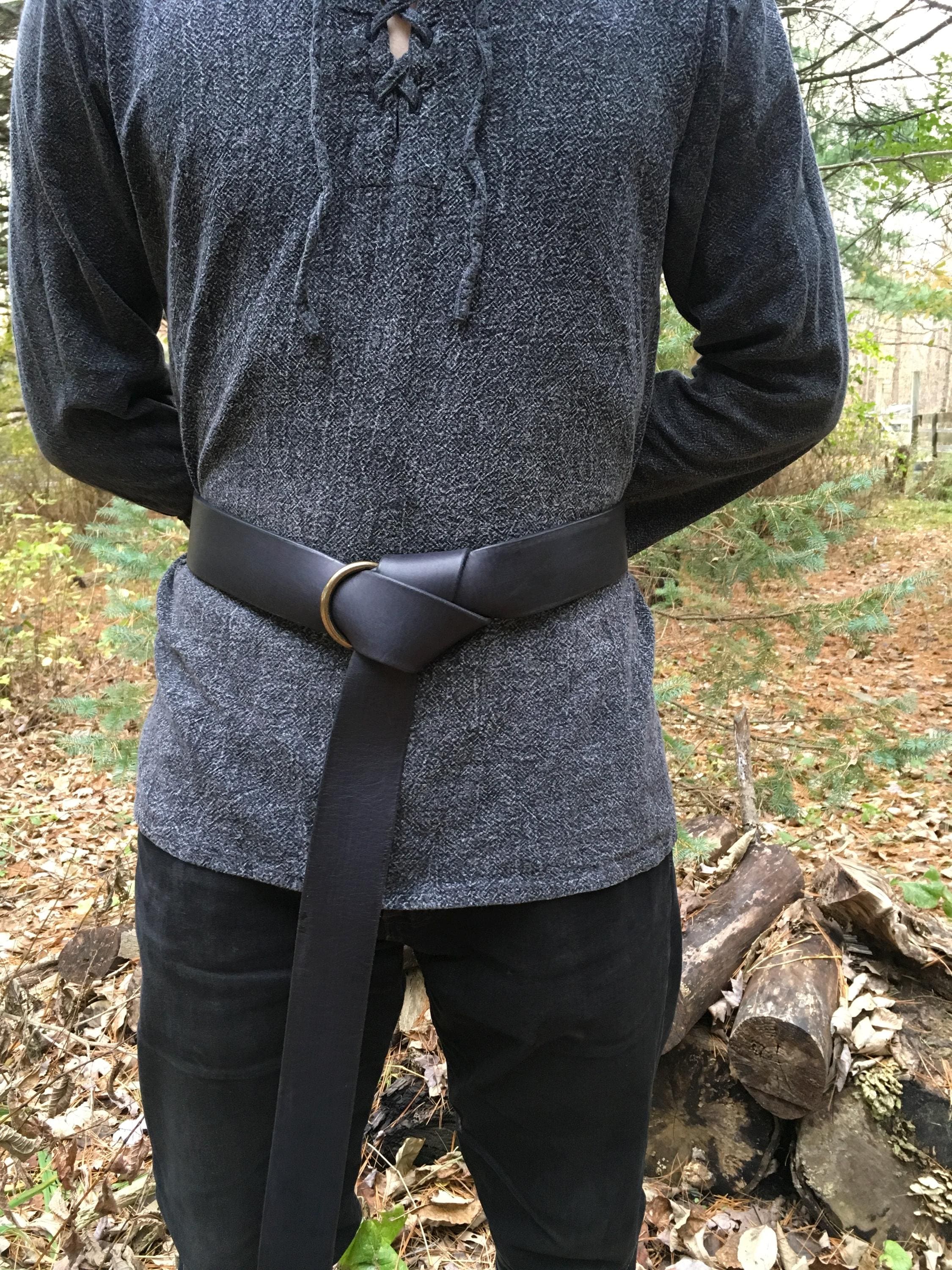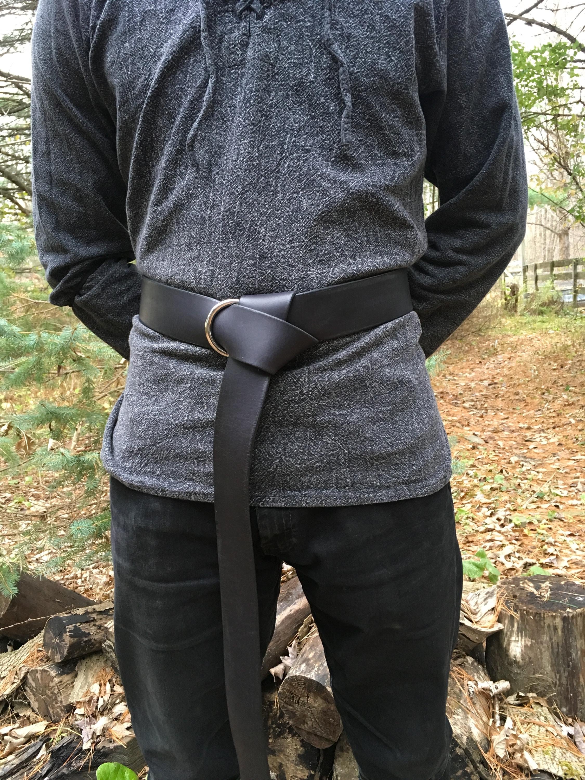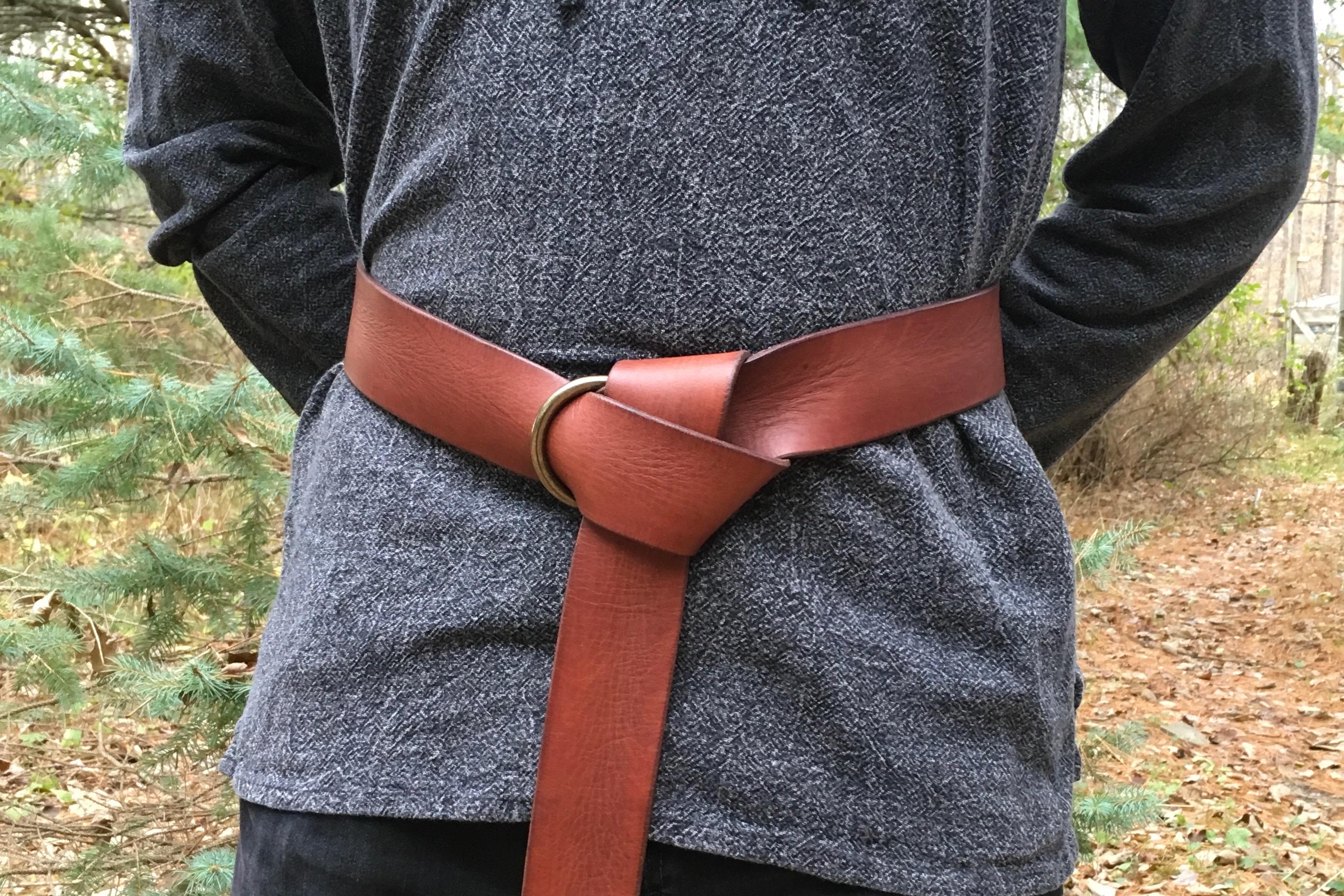 Match your garb with brown, black, fawn, tan, green, blue, purple, or red leather color! Customize for a one-of-a-kind belt with bronze, gold, or silver front ring!