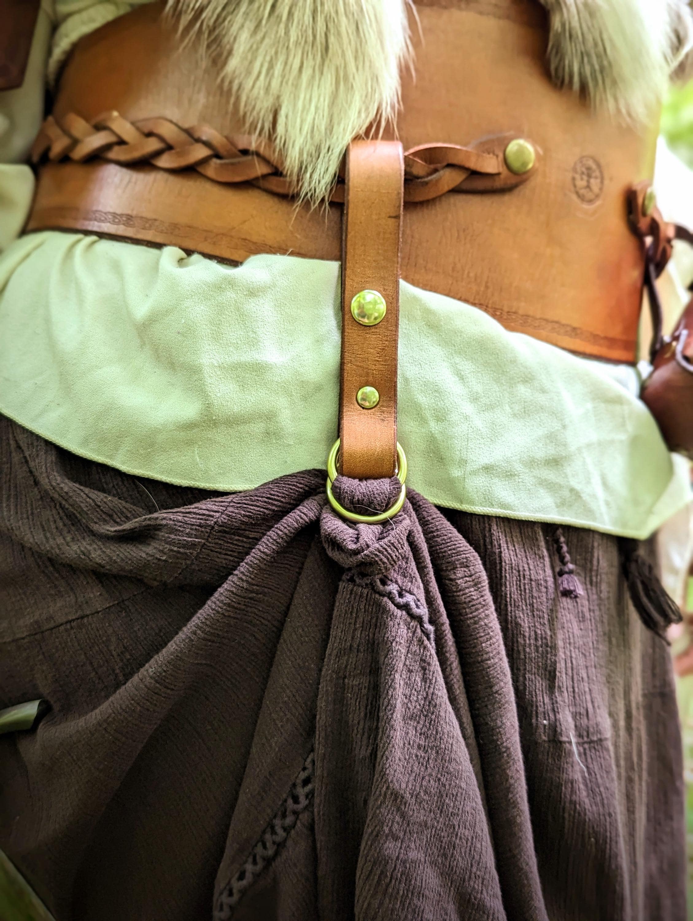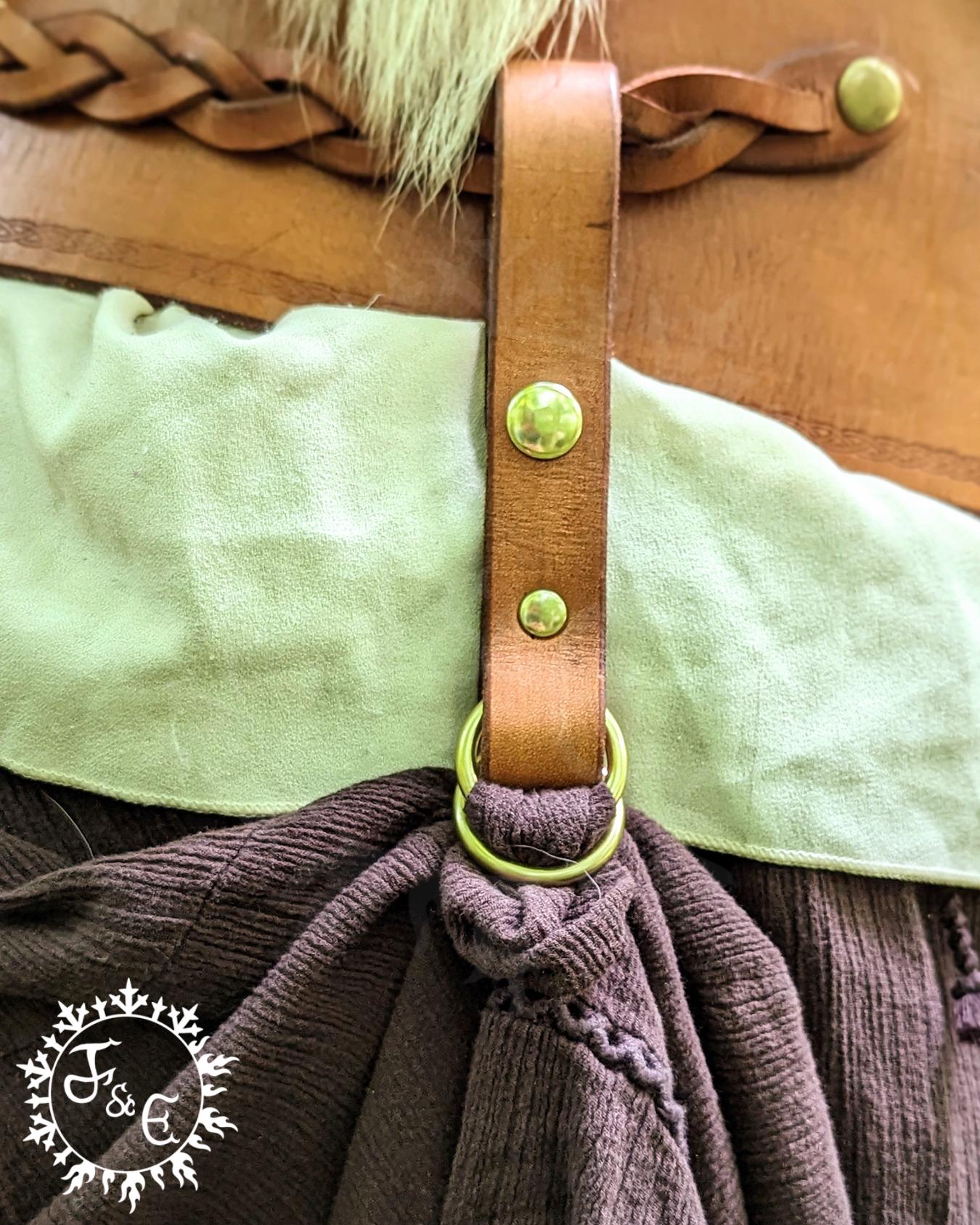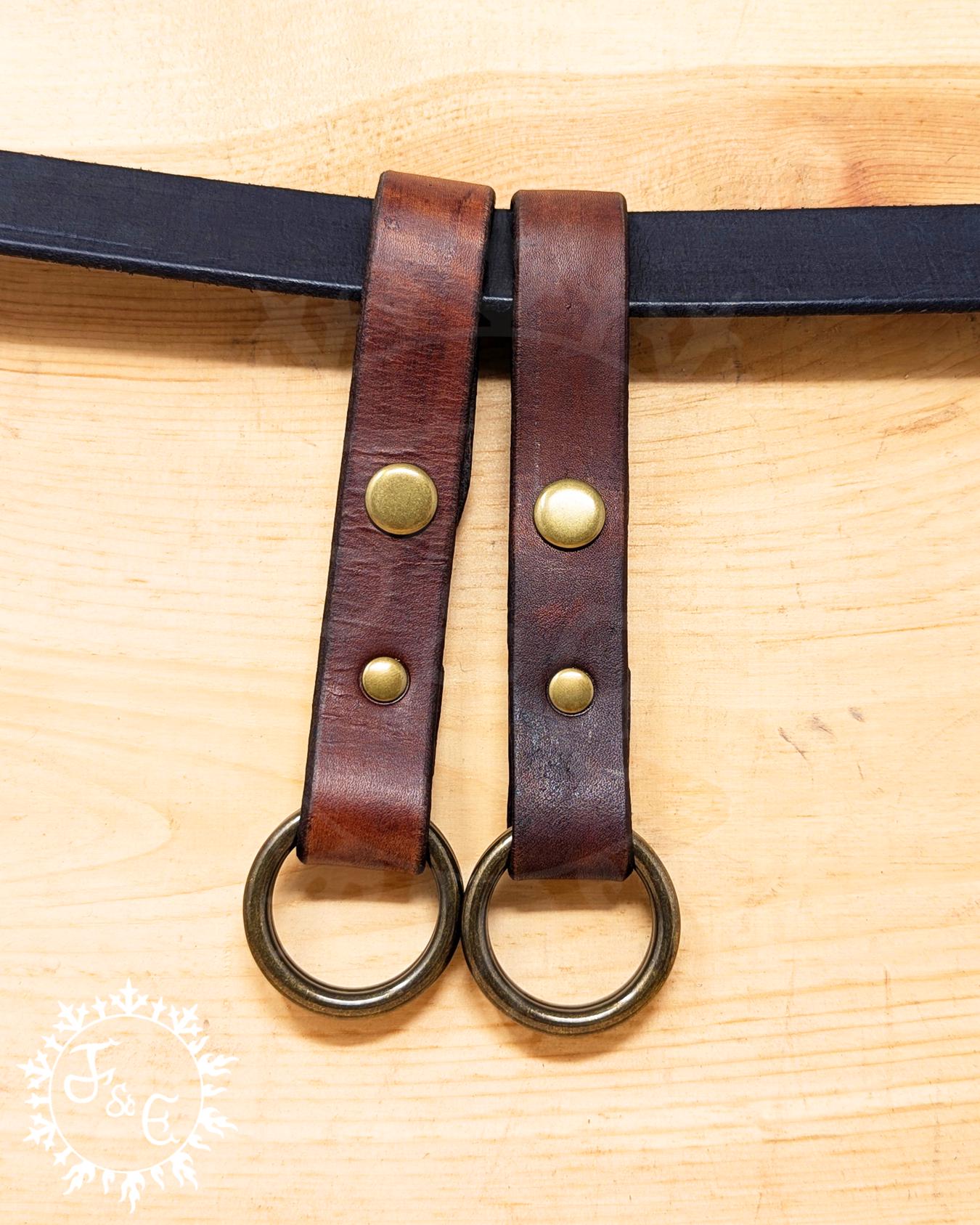 Ever been to town and had your skirt or dress trailing in the mud? When you return to your homestead, you feel like you brought half the road with you on the bottom of your clothes! These skirt lifts are designed for you to keep your garb off the churned trail and clean as when you donned it! Easy to don or remove from your belt, the belt loops are made with snaps to simply snap around the belt without removing it!