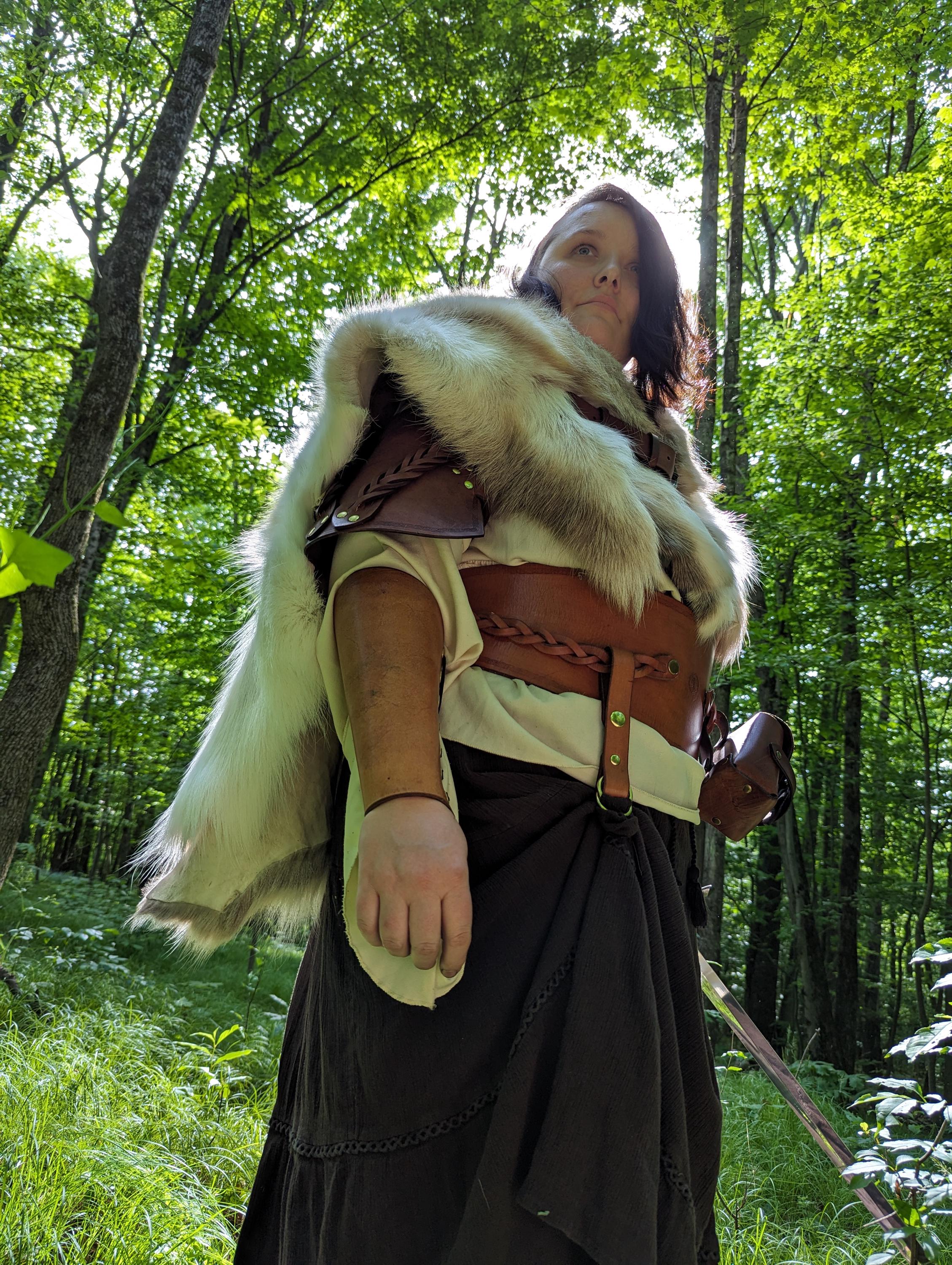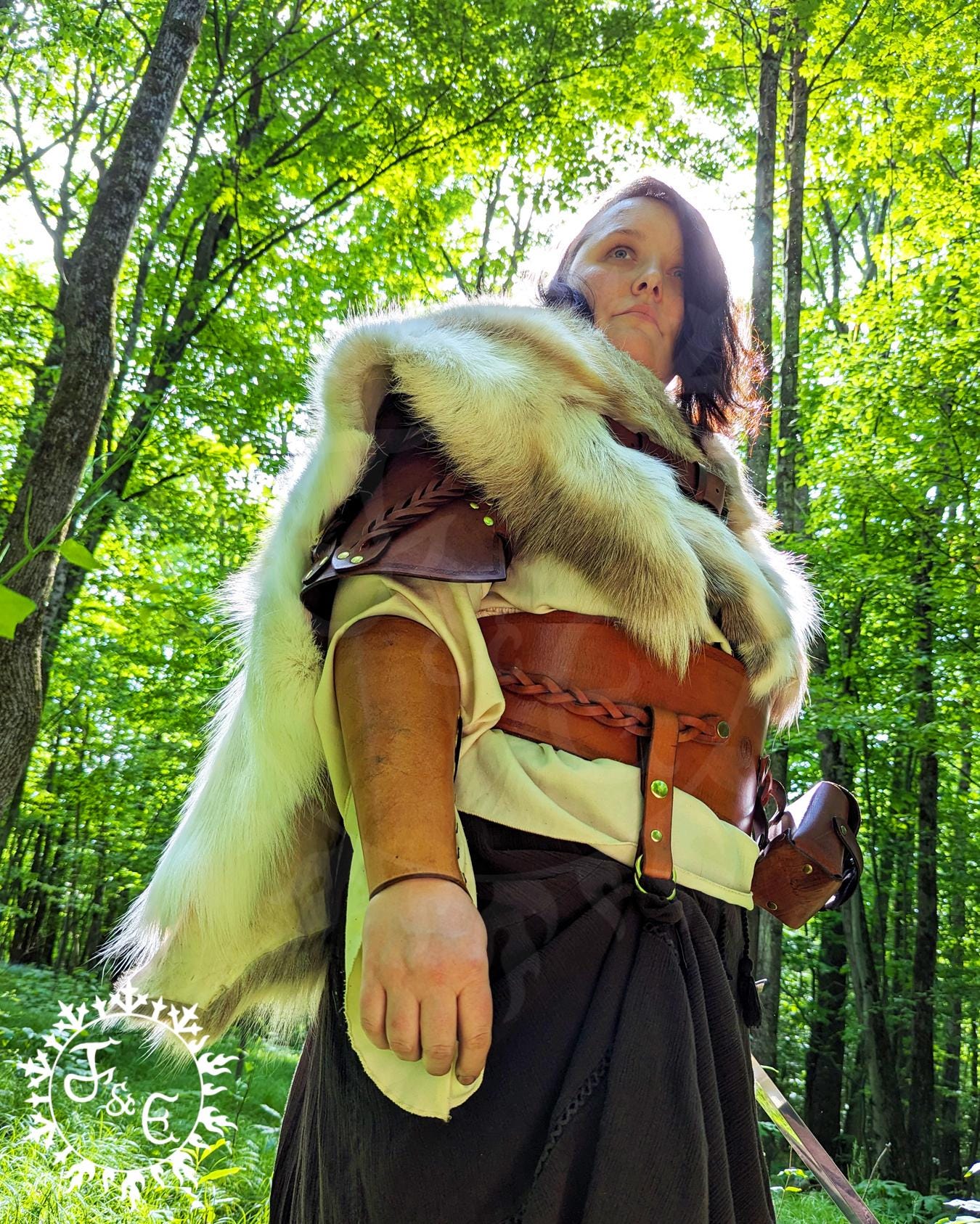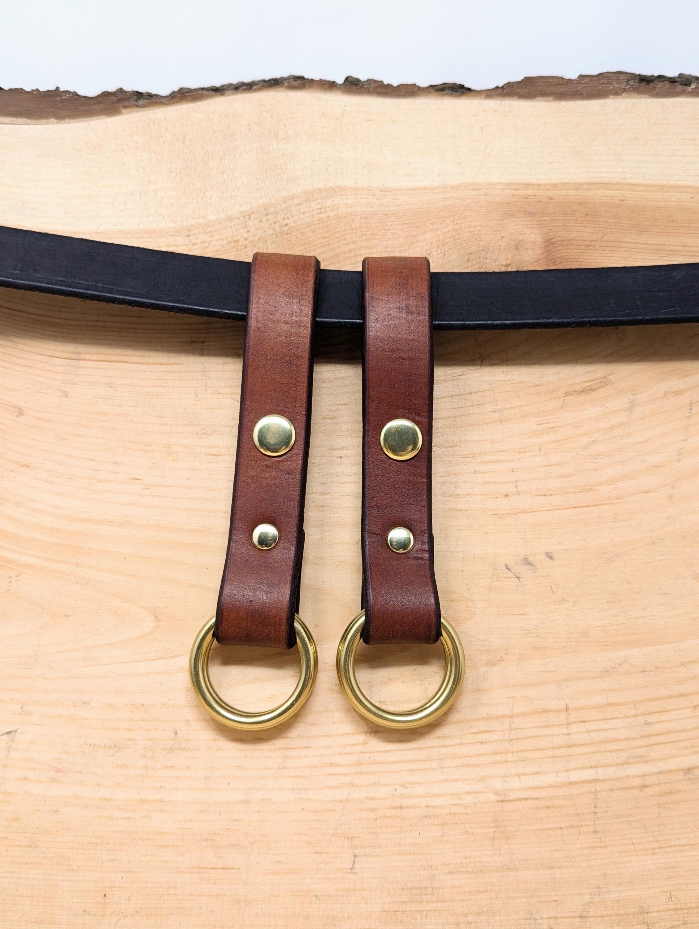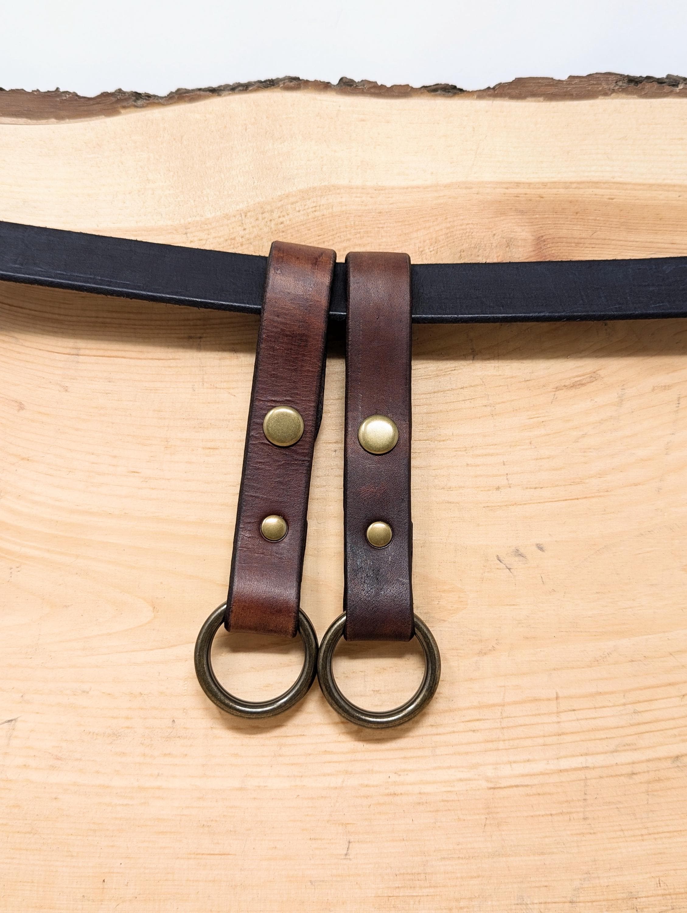 Ever been to town and had your skirt or dress trailing in the mud? When you return to your homestead, you feel like you brought half the road with you on the bottom of your clothes! These skirt lifts are designed for you to keep your garb off the churned trail and clean as when you donned it! Easy to don or remove from your belt, the belt loops are made with snaps to simply snap around the belt without removing it!